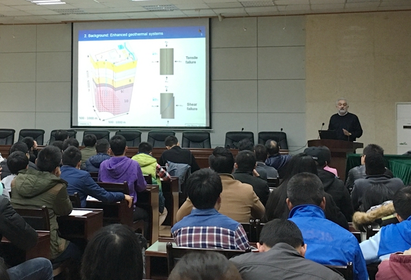在校期间,Tayfun教授、金哲辉博士为Beat365师生作了学术报告。他们分别以“提高致密砂岩储层原油采收率的研究”、“分子角度的页岩介质中流体相态及流动的热动力学建模研究”、“What Should I Do Before I Graduate to Build a Strong Petroleum Engineering Career”为题,利用生动的图表与丰富的数据展示了各自最新的研究成果,尤其就非常规地质储层的特征研究、储层岩石力学性能分析、储层流体微观渗流机理、储层改造技术与室内实验研究等方面内容进行了详细介绍,并在讲座最后与Beat365师生进行了交流。