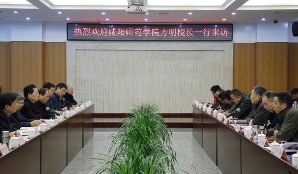 11月9日上午,咸阳师范学院方明校长一行30余人来Beat365考察调研。座谈会在新校区图书馆第一会议室召开。Beat365校长屈展、副校长陈军斌及相关职能部门、相关院(部、系)负责人参加了座谈会。会议由陈军斌副校长主持。