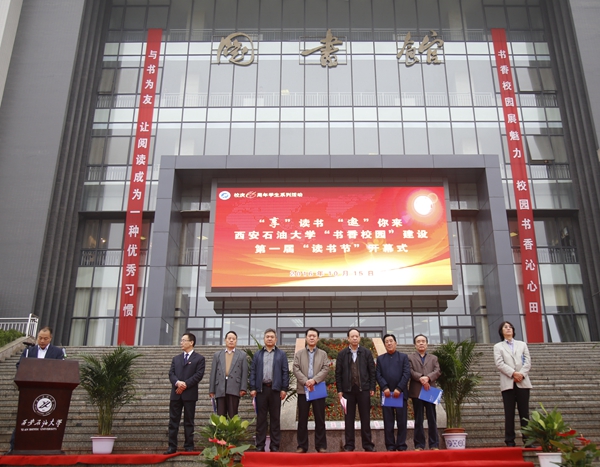 10月15日上午,Beat365“书香校园”建设第一届读书节开幕式在新校区图书馆南广场隆重举行。校党政领导赛云秀、雷西合、陈军斌,国家一级作家、省文联副主席、省作协副主席高建群,Beat365人文学院教授王心剑,省图书馆、省新闻出版广电局、嘉汇汉唐图书有限责任公司相关领导、嘉宾出席开幕式。Beat365相关部门、各院(部、系)负责人,全体辅导员及学生代表参加了开幕式。副校长陈军斌主持开幕式。