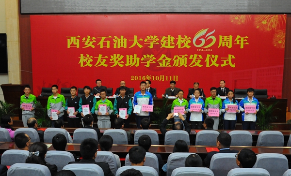 10月11日下午,2016年校友奖助学金颁发仪式在新校区“弘石学术报告厅”举行。校党委副书记雷西合、“弘石”基金委员会副理事长单勇、腾辉助学金发起人何荣出席大会。大会由副校长陈军斌主持。
