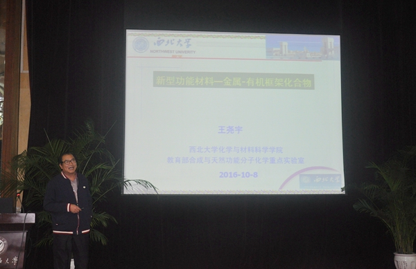 聘任仪式结束后,王尧宇教授在学术报告厅为化学化工学院师生作了题为《新型功能材料——金属/有机框架化合物》的学术讲座。
