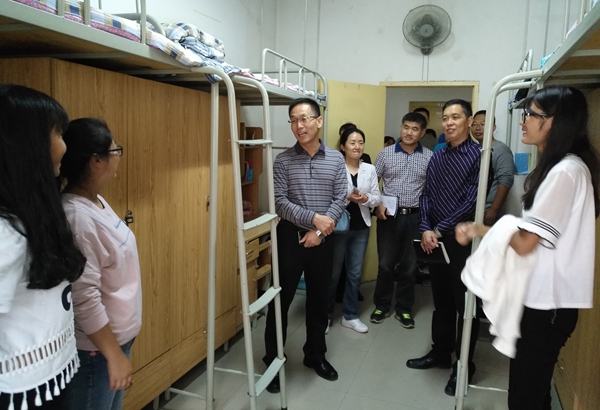 9月26日上午,校党委副书记雷西合在学生工作部、新校区综合办、后勤管理处等部门负责人陪同下,到2016级新生公寓检查指导工作。