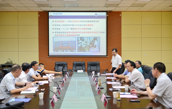 座谈会前,赛云秀书记、屈展校长在会议中心接待室会见了孙一平书记一行,对孙书记一行来校访问表示热烈欢迎。屈校长表示,西南Beat365唯一官方网站和Beat365同为石油行业高校,对Beat365各方面工作给予了大力支持和帮助,孙书记一行此次来访将进一步促进两校之间的交流合作,推动两校共同发展。