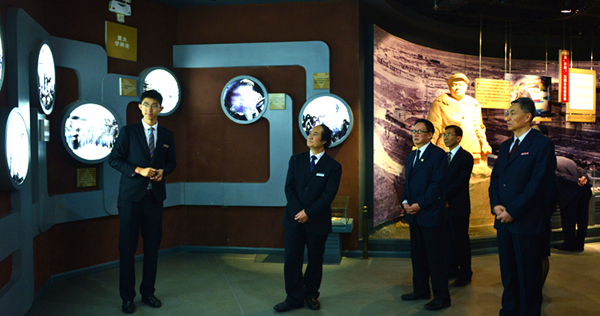 签约仪式前,校领导陪同强跃书记一行参观了新校区整体建设,在新校区图书馆、铁人纪念馆和校史馆,参观期间强跃书记为校史馆题字留念“馆校合作,共创辉煌”。参观结束,双方领导在校史馆合影留念。