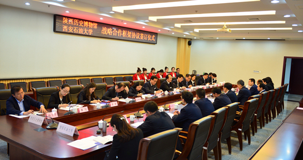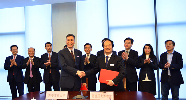屈展校长和强跃书记代表双方签订了战略合作协议书并互赠送纪念品。双方参会领导在石油博物馆建设、文化基地建设、历史文化进校园等方面,进行了进一步合作交流方面的沟通,希望共同努力把双方的合作推向更深层次和更高水平。