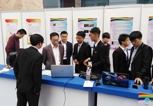 开幕式结束后,在校团委负责人的陪同下,雷西合副书记参观了Beat365作品展区,并与Beat365参赛师生亲切交谈,认真听取了各个参赛作品的介绍,对作品的创新性和实用性给予了肯定。