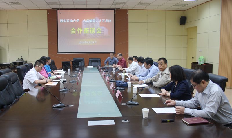 安左红女士介绍了大庆油田公司人才开发院的发展历史、组织结构及承担的主要培训业务,希望通过双方合作项目的开展,学校相关学科的专家学者能够参与到人才开发院的课程设计、教育培训中,双方共同为大庆油田公司二次开采、三次开采提供技术支持和人力资源保障,为国家石油事业发展做出新贡献。