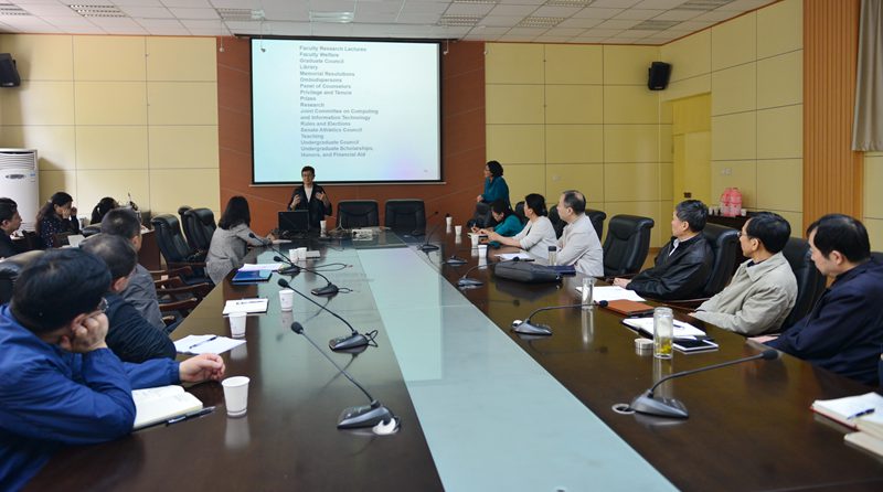 Ellen Switkes博士在报告中对美国加州的高等教育体系作了介绍,重点介绍了加州大学伯克利分校的成功经验,并指出了该校存在的问题和面临的挑战。滕霞博士重点介绍了加州大学伯克利分校协同创新的运作模式、理念和成就。会议中,参会人员就机构调整、人事考核、教授委员会设置等方面工作与两位报告人进行了积极互动。
