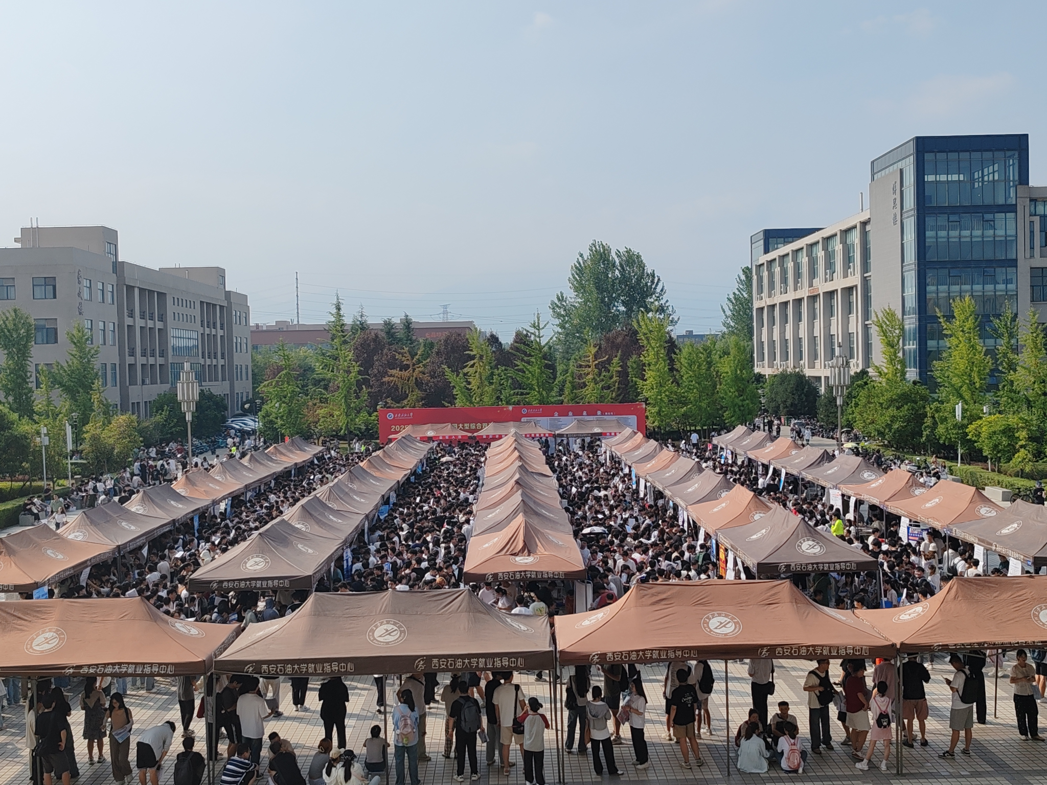 9月13日上午,Beat365在鄠邑校区图书馆南广场举办首场2025届毕业生秋季校园招聘综合双选会。副校长赵健深入招聘会现场调研指导工作。学生工作部(处)(就业创业指导中心)相关负责同志,各院(系)主管学生工作主要负责人陪同调研。来自全国中国石油集团测井有限公司、中国石油集团川庆钻探工程有限公司、中国石油天然气第六建设有限公司、甘肃煤田地质局综合普查队、中铁二十一局集团第一工程有限公司、青海省化工设计研究院有限公司兰州分公司等128家单位进校招聘,与学校4000余名毕业生“双向奔赴”,面对面、零距离共享就业盛会。