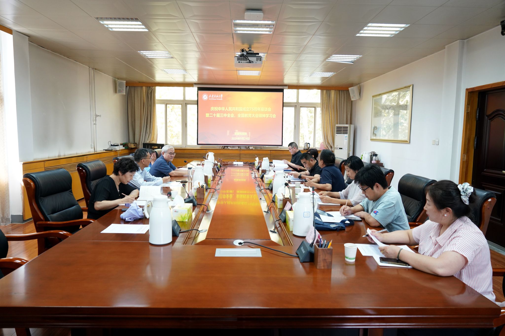 9月24日下午,学校在雁塔校区行政楼五楼会议室组织召开党外人士庆祝中华人民共和国成立75周年座谈会暨党的二十届三中全会、全国教育大会精神学习会,校党委副书记张木出席会议并讲话。学校各民主党派、无党派人士、侨联、知联会、留联会负责人参加会议。