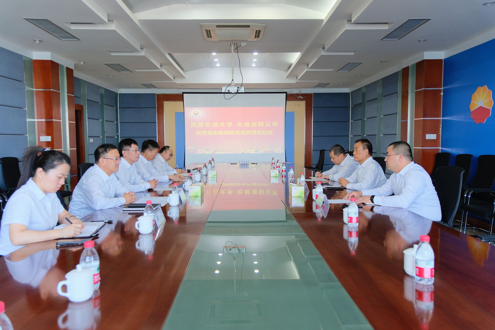 9月26日,校党委副书记程永清带队走访吐哈油田公司,就校企双方联合培养优秀青年教师事宜开展交流,出席校企青年教师联合培养签约仪式。吐哈油田公司党委委员、总地质师李建忠主持座谈会并出席相关活动。