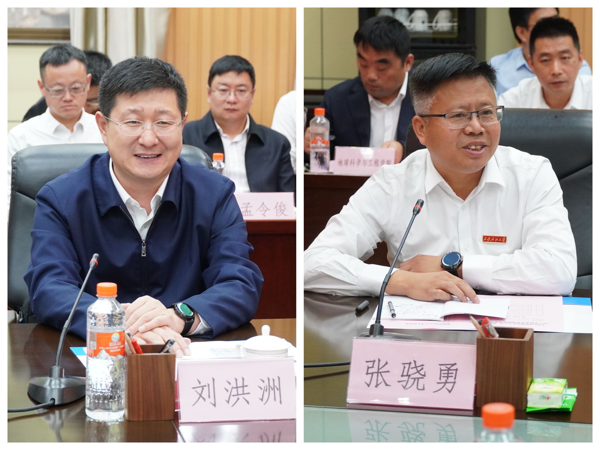 在交流环节,刘洪洲表达了回到母校的激动心情,对学校的培养表示感谢,为学校高质量的发展感到骄傲。张骁勇表示将按照双方既定合作方案,结合新疆油田发展需求,尽最大努力在人才培养、科学研究等方面助力油田发展。
