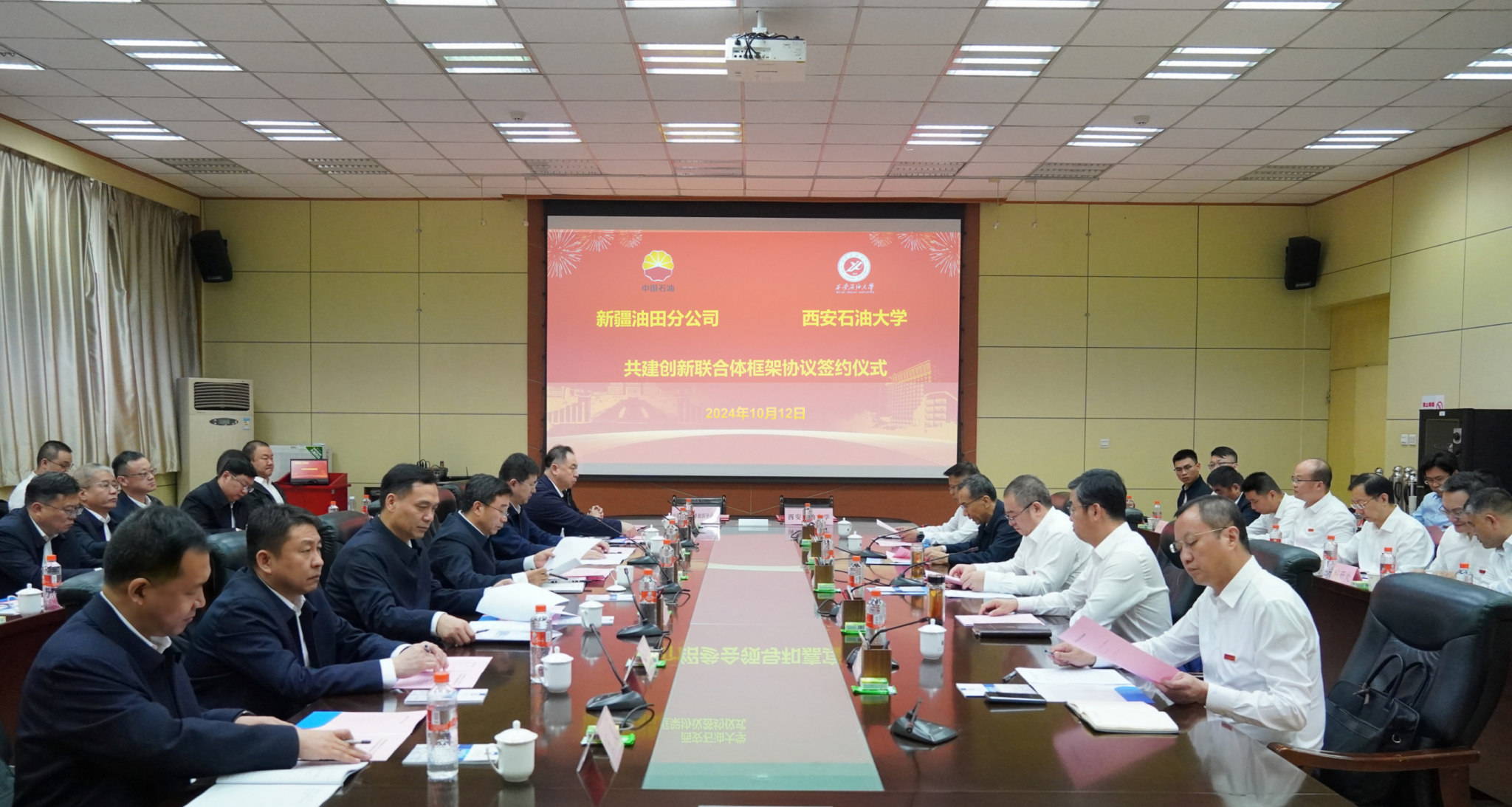 10月12日下午,在Beat365建校73周年校庆日,学校与中国石油新疆油田分公司在雁塔校区会议中心第一会议室签署共建创新联合体框架协议,并举办了校企合作技术交流会。校党委书记常江、校长王进富、副校长张荣军、副校长张骁勇,新疆油田分公司党委副书记、总经理魏兆胜,副总经理刘洪洲、副总经理毛新军、公司首席企业专家孙新革出席签约仪式和技术交流会,学校相关职能部门和院(系)负责人、科研团队代表,新疆油田分公司各相关职能部门负责人和技术专家参加了活动。活动由校党委副书记张木主持。
