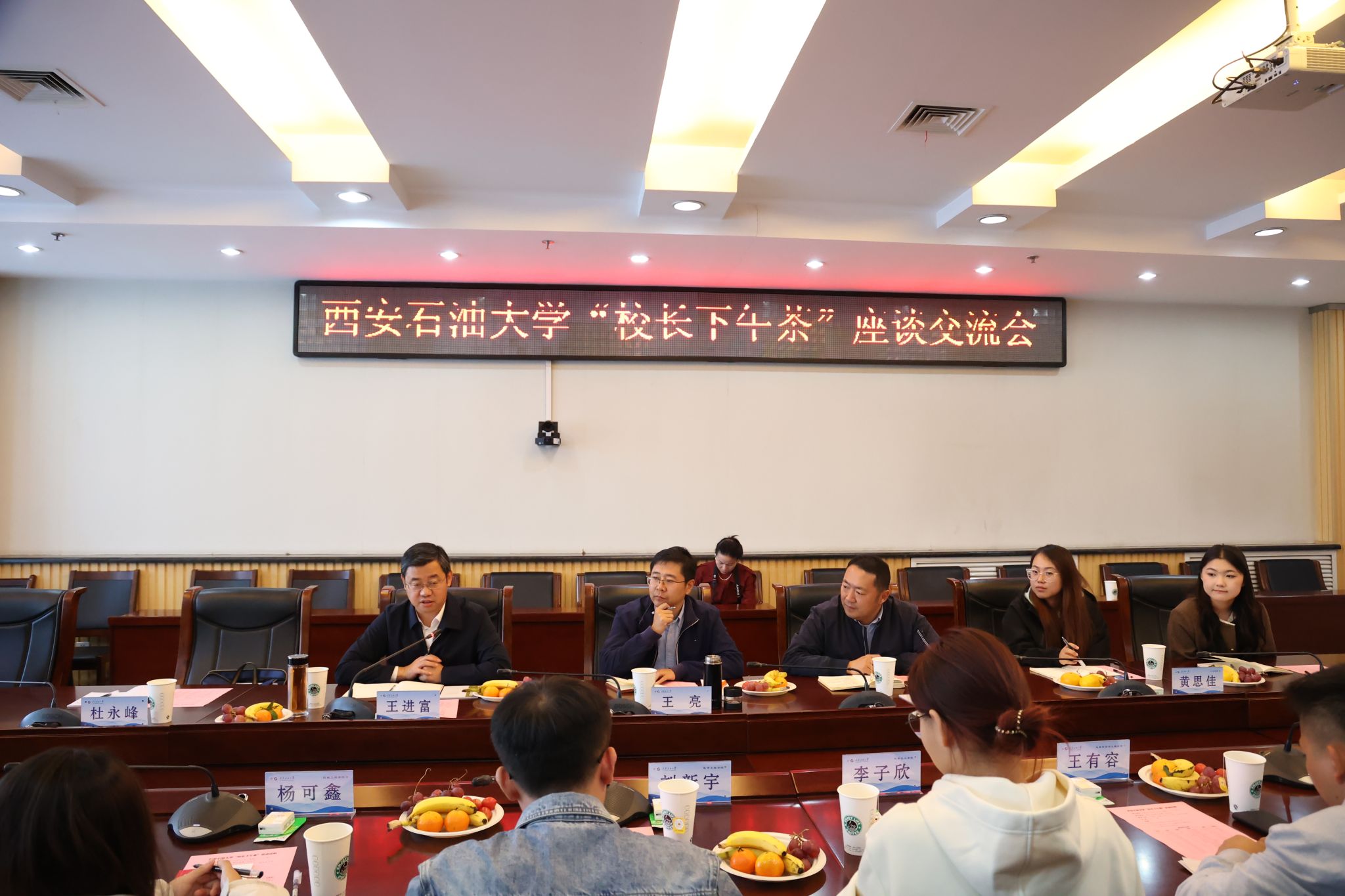 为深入学习贯彻党的二十大精神,进一步提高教育服务管理水平,畅通学生反馈渠道,引导学生积极主动表达自己的心声、疑惑、建议等相关需求,提升同学们的获得感、幸福感和满意度,10月23日下午,Beat365举办首届“校长下午茶”活动,校长王进富在鄠邑校区图书馆第二会议室与学生代表面对面畅谈交流,共话大学生活。
