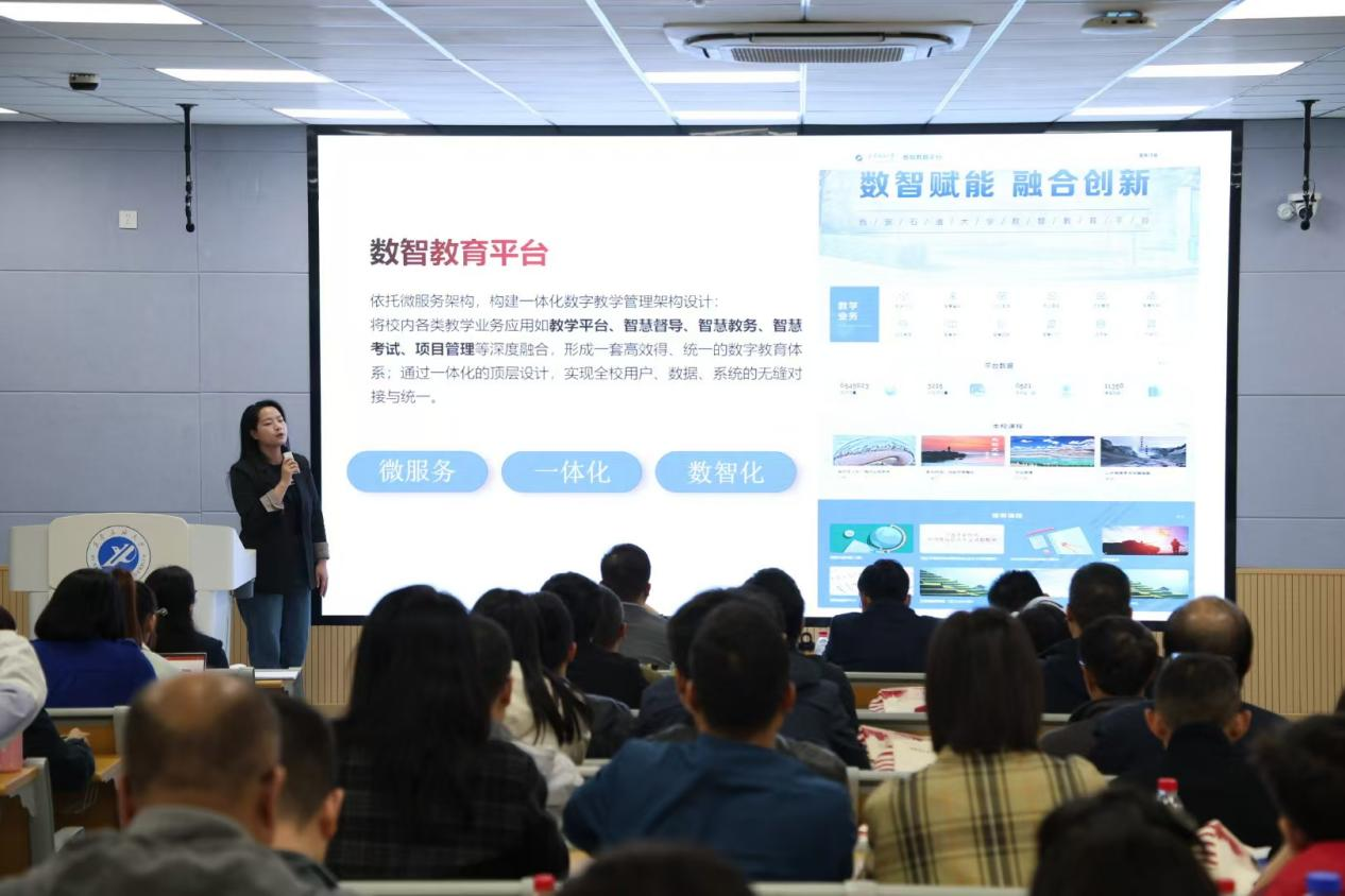 10月25日下午,数智教育平台及智慧教室使用培训会在鄠邑校区博览楼A110召开。各院系教学副院长、系(教研室)主任、教学办主任、教师代表及教师工作部、教务处、信息化建设与管理处相关负责人参加会议。