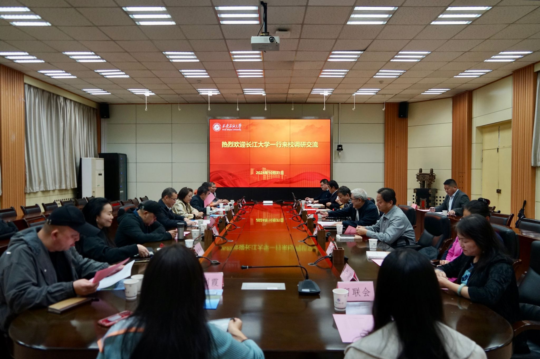 10月31日下午,长江大学党委统战部常务副部长王勇带队,长江大学党委统战部及各民主党派、统战团体负责人一行9人,来Beat365调研交流,在雁塔校区会议中心第二会议室举办调研交流座谈会。会前,校党委副书记张木会见了王勇一行,并就加强党外知识分子思想政治引领、民主党派基层组织建设等工作进行了交流。学校各民主党派、无党派人士、侨联、知联会、留联会负责人参加座谈会。