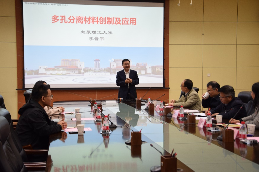 11月3日下午,中国化工学会会士、怀柔实验室山西研究院副院长李晋平教授应邀来Beat365进行学术交流。并在雁塔校区第一会议室为Beat365师生作题为“多孔分离材料创制及应用”的学术报告。副校长张骁勇,科研处、化学化工学院负责人出席报告会。