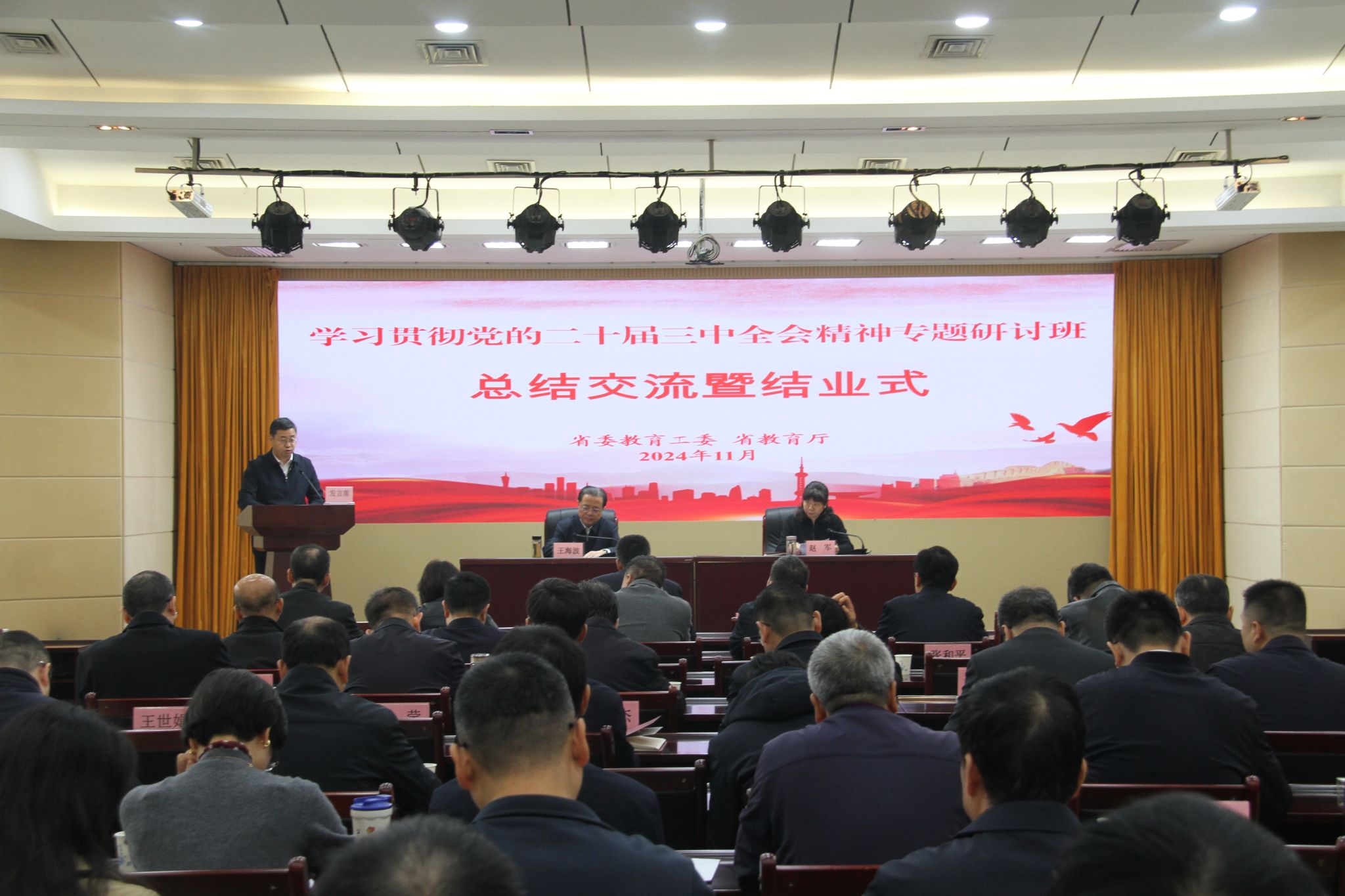 本次专题研讨班历时三天,主题鲜明、内容丰富、研讨深入、纪律严实。全体参训学员认真参加各环节学习,积极互动交流,扎实完成既定学习任务,展现了良好学风,达到了预期目的。通过本次专题研讨学习,参训学员进一步深化了对习近平新时代中国特色社会主义思想和党的二十届三中全会精神的理解和认识,深刻领会和把握进一步全面深化改革的主题、重大原则、重大举措、根本保证。参训学员坚定地表示,要把学习宣传贯彻党的二十届三中全会精神作为当前和今后一个时期的重要政治任务,深刻领悟“两个确立”的决定性意义,坚决做到“两个维护”,解放思想、改革创新、再接再厉,以饱满的精神、务实的作风和扎实的业绩推动学校各项事业高质量发展!