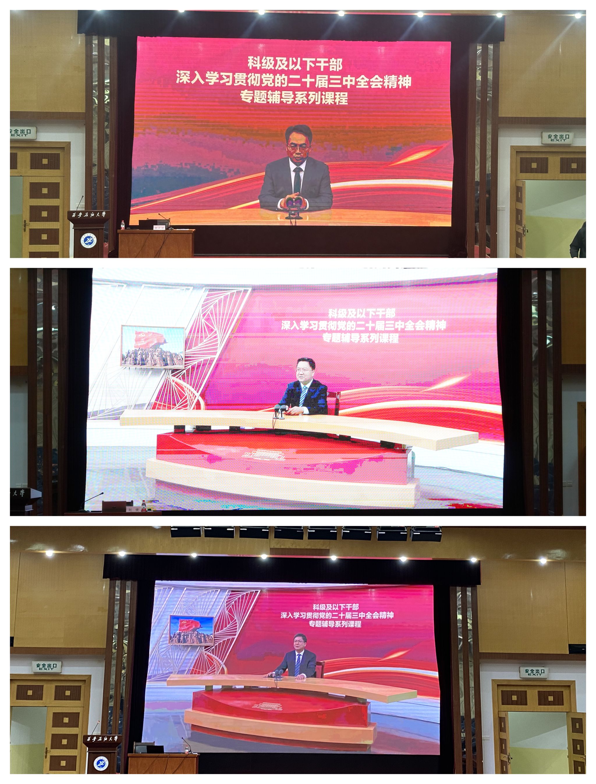 培训期间,全体参训学员集中观看学习了中央党校(国家行政学院)副校长(副院长)龚维斌、研究室主任沈传亮和党的建设教研部副主任祝灵君3位教授分别作的题为“发挥经济体制改革牵引作用,全面推进各领域改革”“深入学习贯彻习近平总书记关于全面深化改革的一系列新思想、新观点、新论断和党的二十届三中全会精神”以及“加强党对进一步全面深化改革的领导”专题辅导报告。