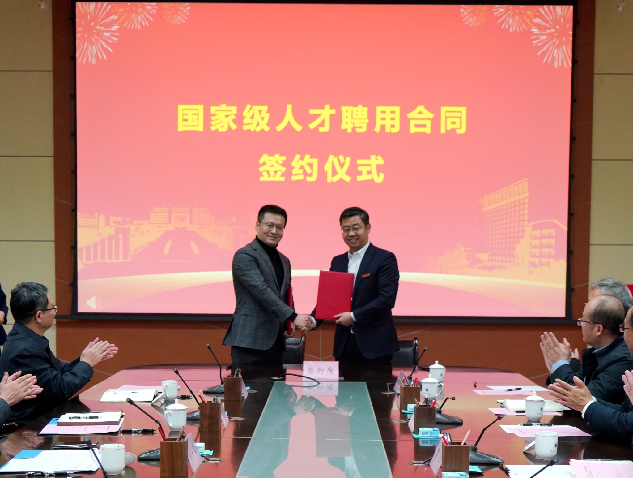 王进富代表学校与崔仕章教授签定了聘用合同。