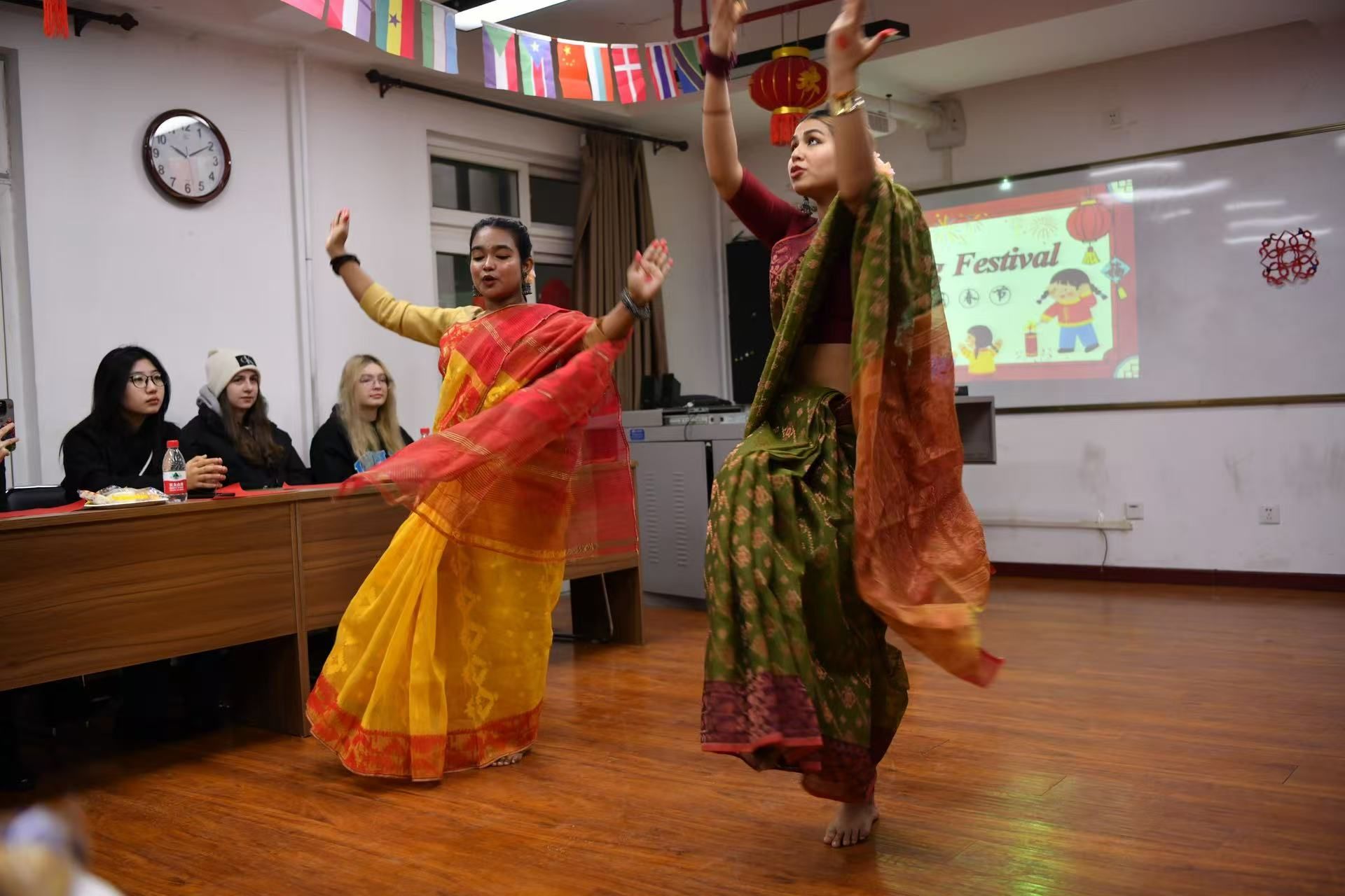 国际学生们带来了精彩的舞蹈节目,用优美的舞姿和独特的韵律展示了多元文化的迷人魅力,为中国新年的庆祝活动增添了浓郁而热烈的节日氛围,表演赢得了现场观众的阵阵热烈掌声,也为中外文化的交流与理解搭建了一座无形的桥梁。