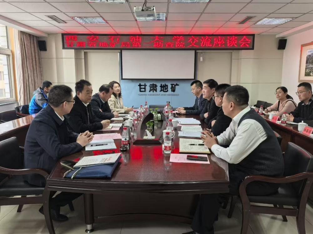3月11日上午,在甘肃省地矿局第二勘察院走访期间,甘肃省地矿局第二勘察院党委书记、院长白廷祥主持座谈会,党委副书记兼工会主席曾永刚、副院长陈世强、俞胜等出席会议。白廷祥对程永清一行的到来表示欢迎。他简要介绍了公司的基本情况、发展历程、探区分布和公司业务板块情况,对学校毕业生给予高度肯定和赞扬。他表示做强科技、做大规模、做精管理、做优人才、做厚文化、做实党建,需要与学校深化交流,希望双方在图书资料共享、专利联合申报、在职员工教育培训等方面实现进一步合作。