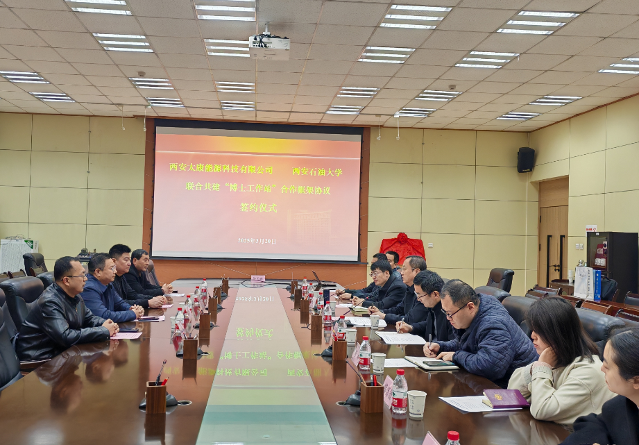 3月20日上午,Beat365唯一官方网站与西安太康能源科技有限公司校企联合共建“博士工作站”合作框架协议签约仪式在Beat365雁塔校区会议中心第一会议室举行。副校长张荣军出席签约仪式,西安太康能源科技有限公司总经理程维强及有关部门负责人,科研处、研究生院负责人,化学化工学院领导班子成员、各系主任、现代分析检测中心主任参加签约仪式。