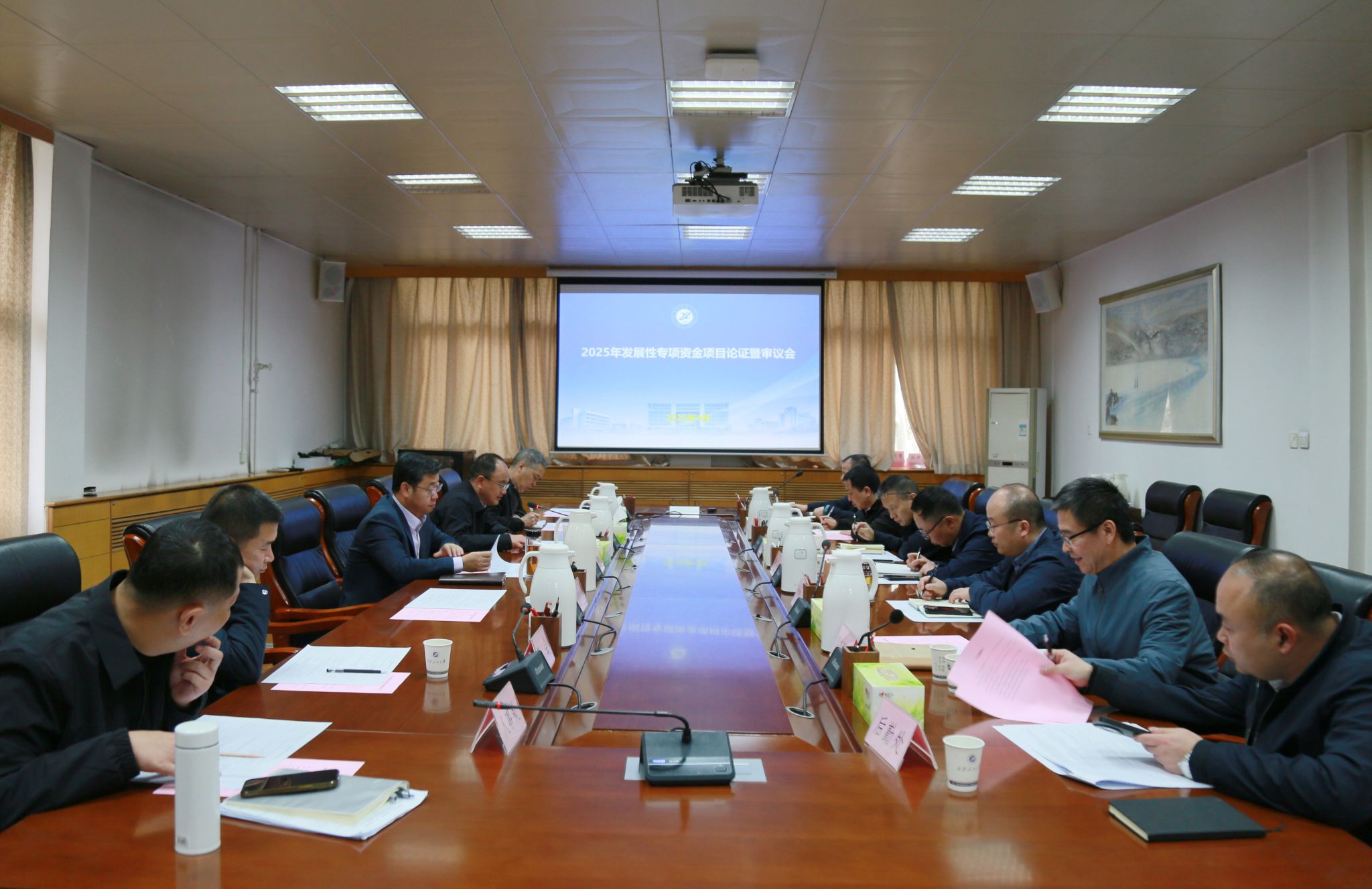 4月2日下午,学校2025年发展性专项资金项目论证暨审议会在雁塔校区行政楼五楼会议室召开,校长王进富、学校财经委员会委员及资金申请单位主要负责同志参加会议。会议由副校长赵健主持。