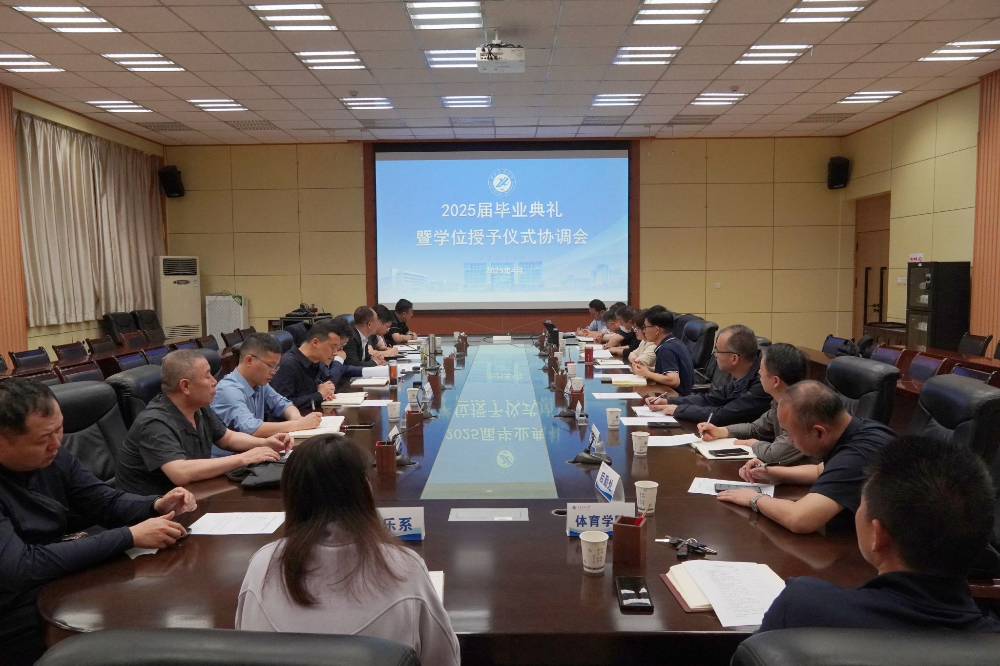 学生工作部就2025届毕业典礼暨学位授予仪式前期准备工作进行了专题汇报。其他参会部门围绕分工安排和相关问题进行了交流讨论。