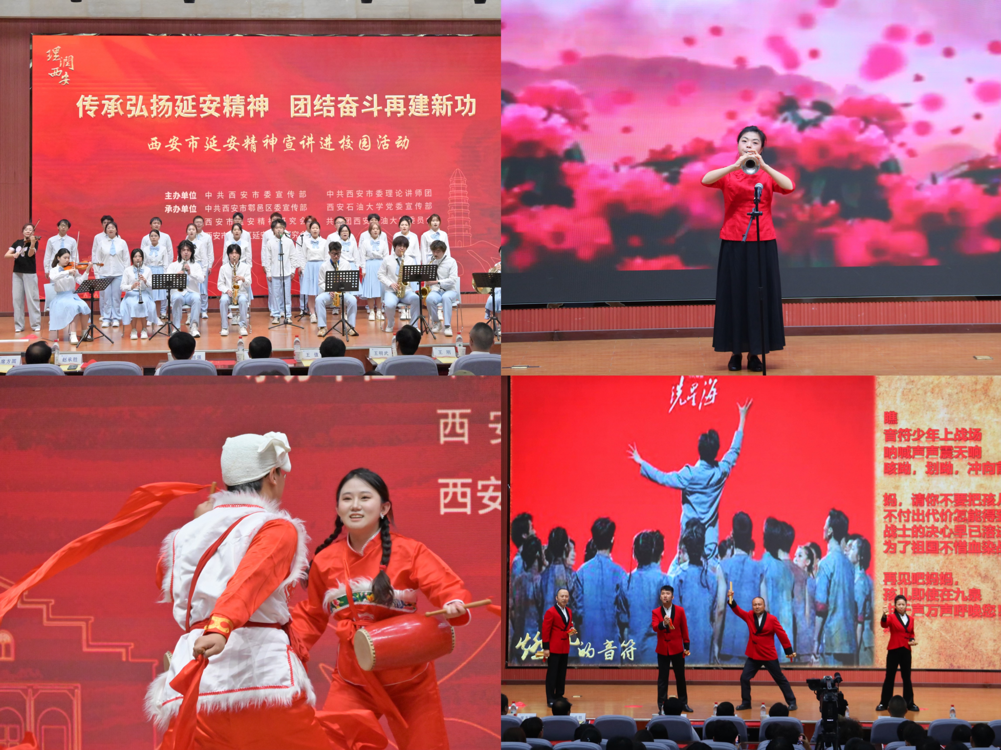 本次宣讲活动通过“理论宣讲+艺术展演”的创新形式,以《延安的窑洞有马列主义》《艰苦创业—一张照片背后的故事》《全心全意为人民服务》《石刻承载的思想路线》等精品宣讲节目为主线,生动再现了党在延安时期领导革命斗争、探索马克思主义中国化时代化的壮阔征程。宣讲团成员以细腻的历史叙事,将延安精神具象化为革命先辈的奋斗故事,让“实事求是”“理论联系实际”“全心全意为人民服务”等精神内核跨越时空,在新时代青年心中激起强烈共鸣。