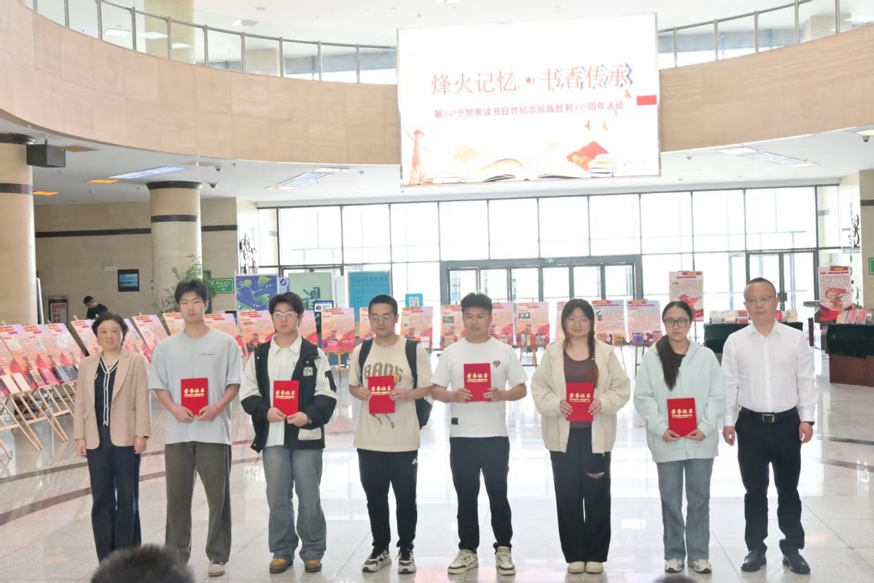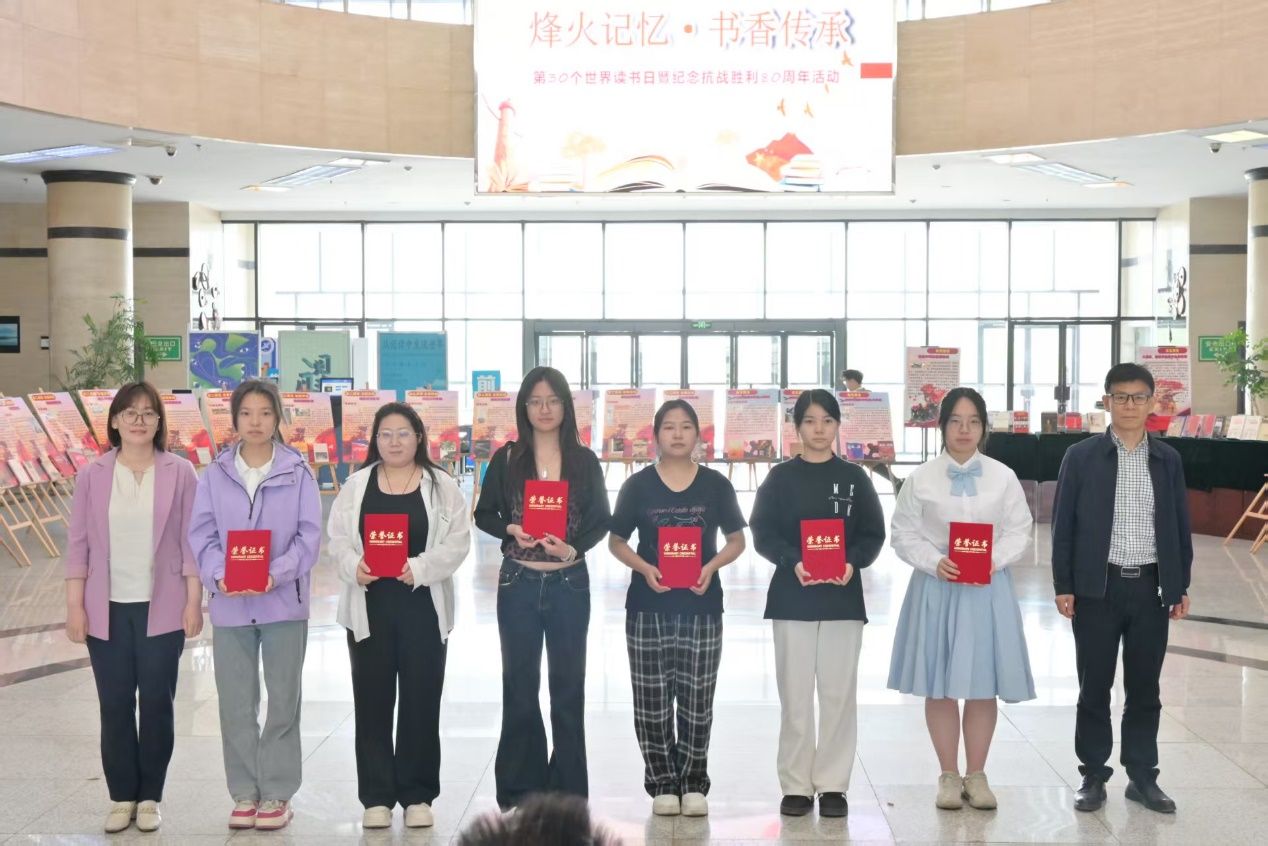 程永清在仪式上致辞。他谈到,书籍是知识的载体,是人类进步的阶梯。“世界读书日”的设立,旨在倡导阅读对人类文明进步的重要意义,通过阅读不仅能够帮助我们增强知识量的积累,还能让我们开阔视野、塑造品格。近年来,学校通过开展“书香校园建设”“读书分享会”“诵读经典”等系列活动,让书籍成为了大家的良师益友,让图书馆成了校园里最温馨的港湾。他指出,今年是中国人民抗日战争暨世界反法西斯战争胜利80周年,今天我们举行的主题展览活动,主要是以抗战时期重要历史事件为主线,以红色文化纪念馆门票、抗战期间相关书籍为载体,带领我们追忆那段血与火的岁月,用心感悟革命先辈的信仰与坚守。希望全体师生以此次活动为契机,读经典,用人类智慧之光涤荡我们的灵魂;忆先烈,让伟大抗战精神激励起我们实现民族复兴的精神动力,以书香润泽初心,在阅读中提升境界,在铭记中坚定信仰。