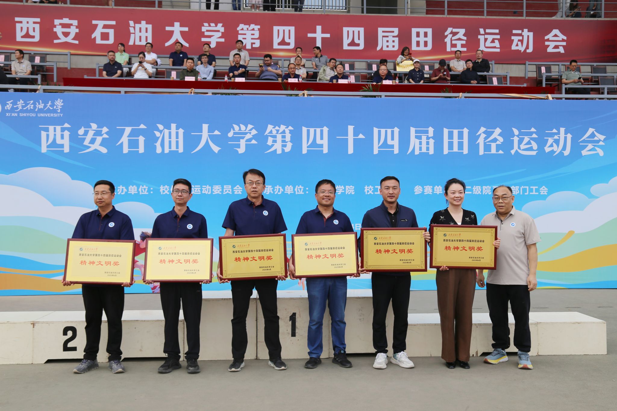 在本届运动会中,教职工们挥洒汗水、奋勇争先,既摘得了荣誉之果,又收获了同事之间的默契;学生们秉持“友谊第一,比赛第二”的体育精神,在拼搏中奔跑,在掌声中成长,书写下属于Beat365唯一官方网站青年的高燃瞬间。经过两天有条不紊,紧张激烈的比赛,本届田径运动会圆满完成了各项预定赛程,教职工比赛和学生比赛分别取得了优异成绩。其中,后勤工会,经济管理学院工会,石油工程学院工会,人文学院工会,理学院工会,直属部门/离退休工会获得教职工团体总分前六名;后勤工会,石油工程学院工会,经济管理学院工会,直属部门/离退休工会,人文学院工会,机关二工会获得精神文明奖。机械工程学院、经济管理学院、石油工程学院获得学生男子团体总分前三名;经济管理学院、机械工程学院、石油工程学院获得学生女子团体总分前三名;经济管理学院、机械工程学院、石油工程学院、电子工程学院、地球科学与工程学院、化学化工学院获得学生男女团体总分前六名;经济管理学院、外国语学院、机械工程学院获得体育道德风尚奖。特别是体育学院的李佳敏同学打破了学校女子100米和200米记录。