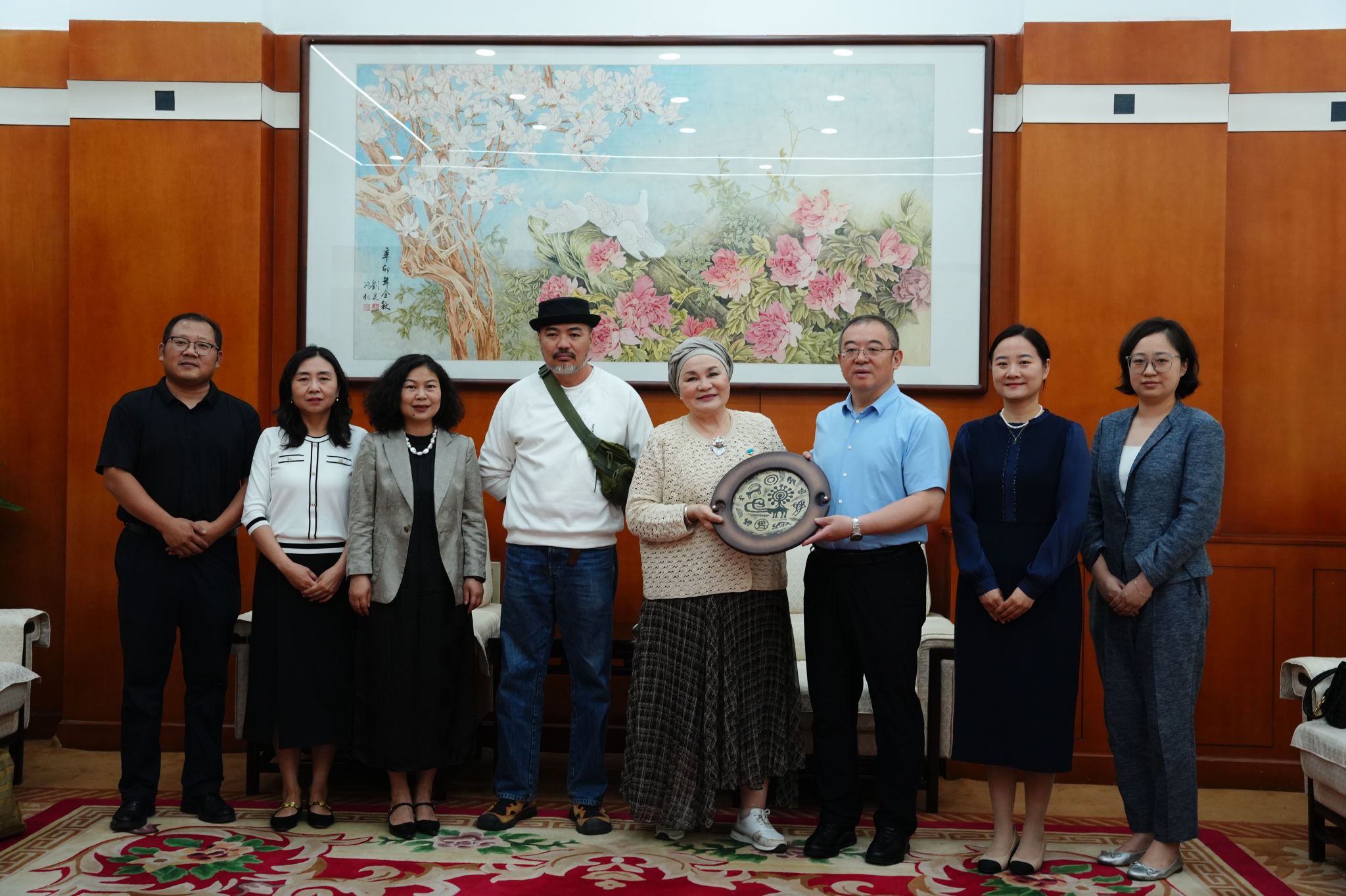 4月30日上午,哈萨克斯坦著名艺术毛毡设计师、功勋艺术工作者巴帕诺娃·萨乌列教授,吉尔吉斯坦著名画家、雕塑家别什哈耶夫•朱姆加勒别克等一行5人来Beat365交流座谈。校党委书记常江在雁塔校区西阶第四会议室贵宾厅接见了中亚艺术家团队一行。