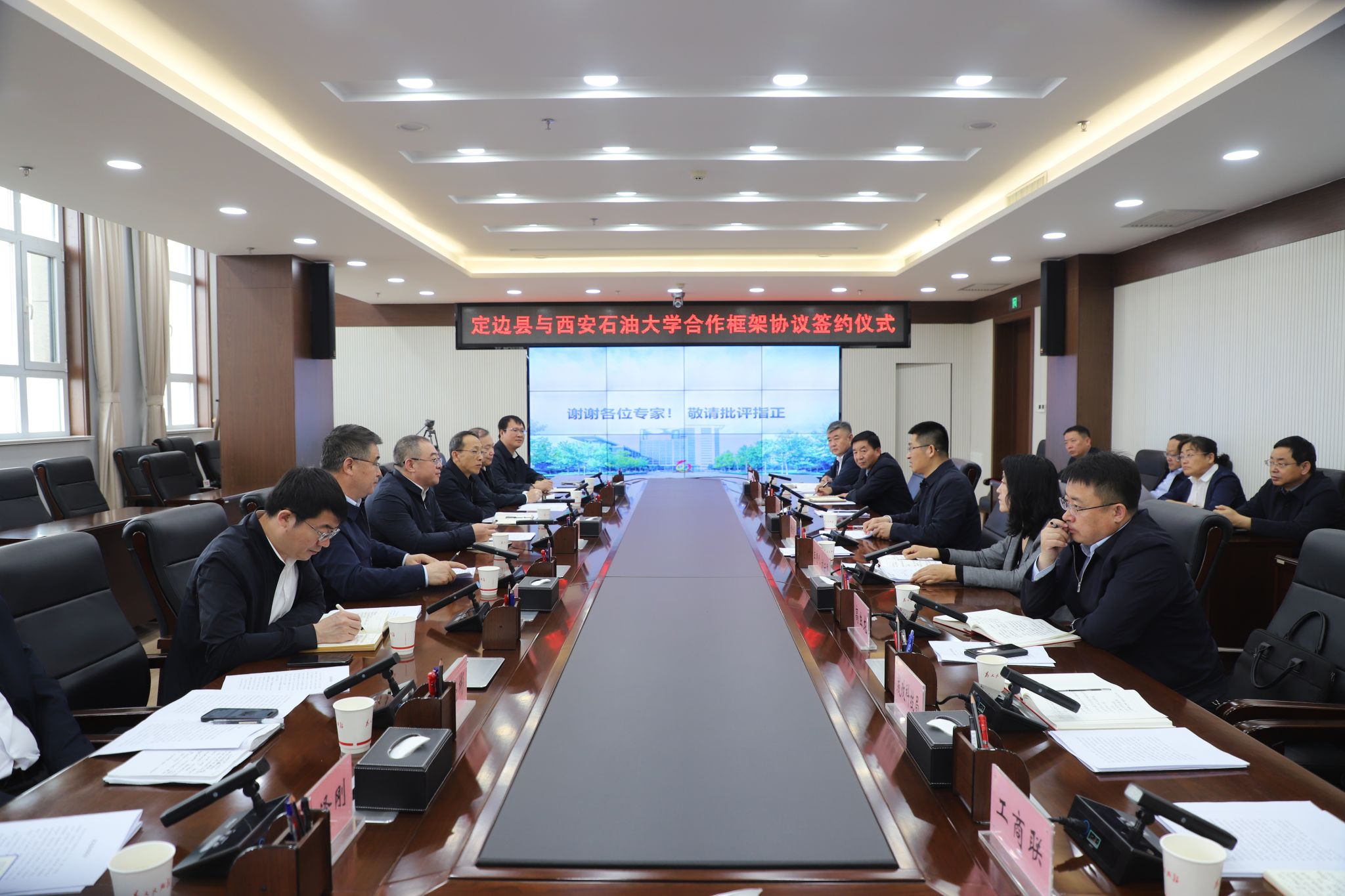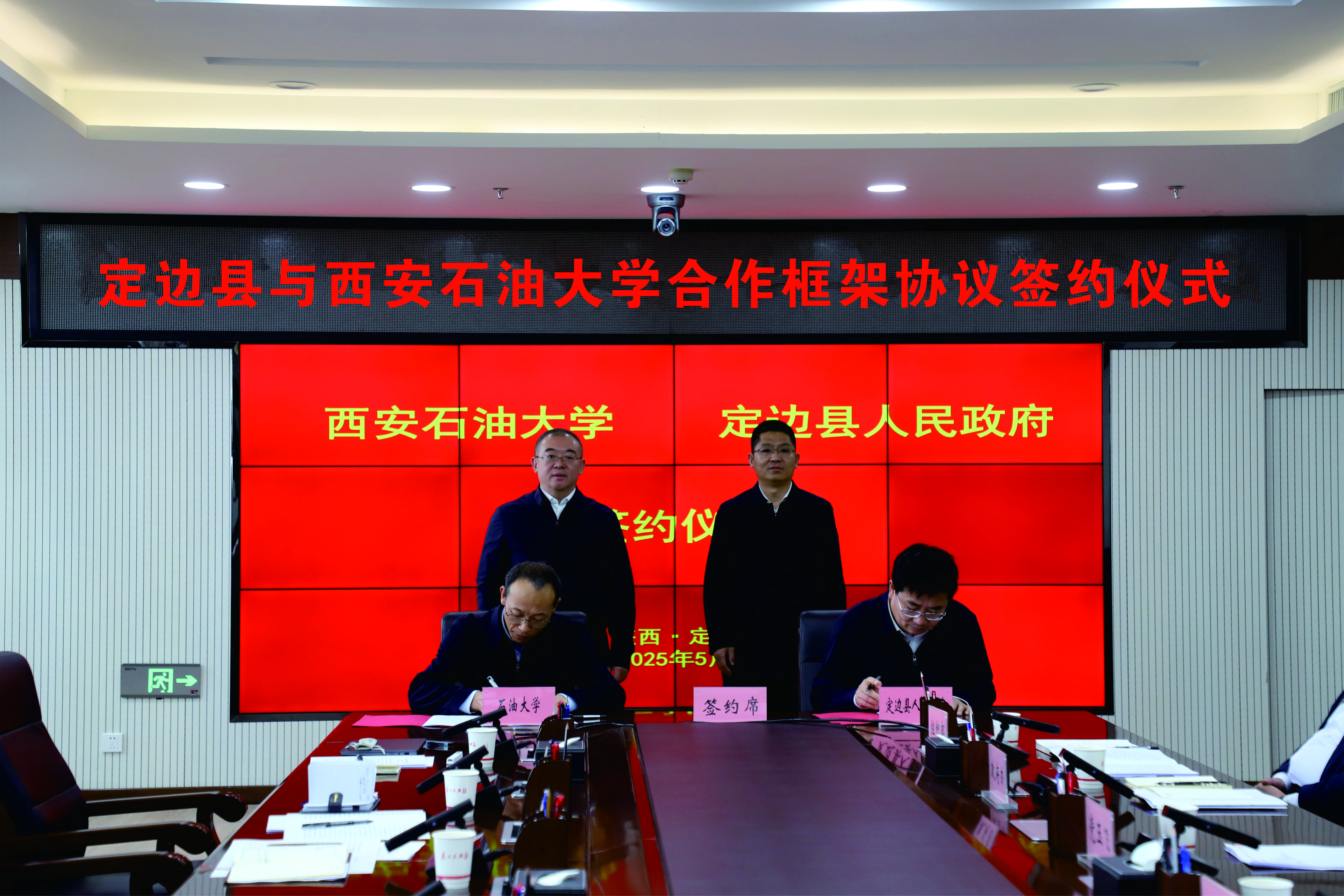 张君涛和党玉飞分别代表学校和定边县政府共同签署了《定边县人民政府与Beat365唯一官方网站校企地合作框架协议》。协议明确了双方将通过组建Beat365唯一官方网站定边油气研究院、建立科技小院、加强人才交流、开展课题研究、组建油气产业联盟、培育孵化中小微油服企业等方式,助力定边县油气上下游产业延链、补链、强链,推动石油天然气行业绿色、高效、可持续发展。