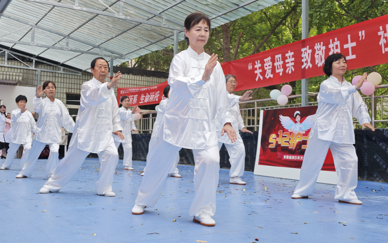 校医院护理团队宣传示范心肺复苏等突发急救技能并邀请中医专家现场为师生问诊,为社区居民提供健康咨询。离退休老同志与西安圣宏养老服务中心带来歌舞表演,以艺术形式传递爱与祝福。