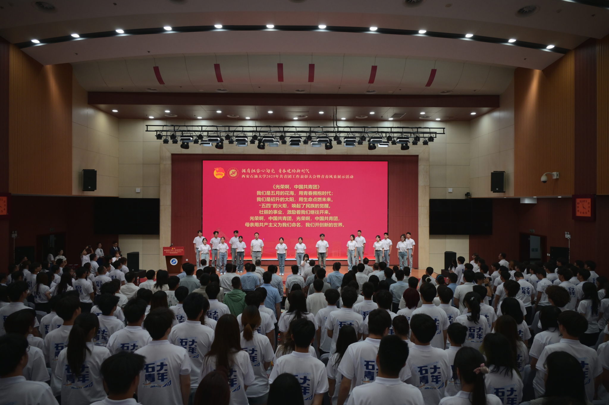 大会在全场团员青年合唱团歌《光荣啊,中国共青团》的嘹亮歌声中落下帷幕。