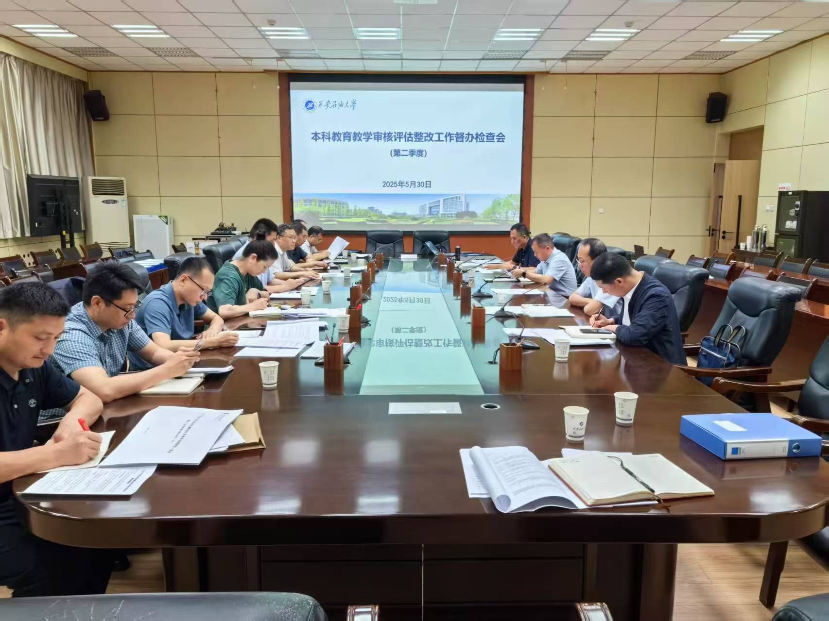 5月30日上午,学校在雁塔校区第一会议室召开本科教育教学审核评估整改工作第二季度督办检查会。校党委副书记张木、副校长张君涛出席会议,党委办公室(校长办公室)、组织部、党委宣传部、党委学生工作部、党委教师工作部、发展规划处、人事处、教务处、实验室管理处、科研处、研究生院、信息化建设与管理处、财务处、国际合作与交流处、高教研究与评估督导中心、图书馆负责人参加会议。