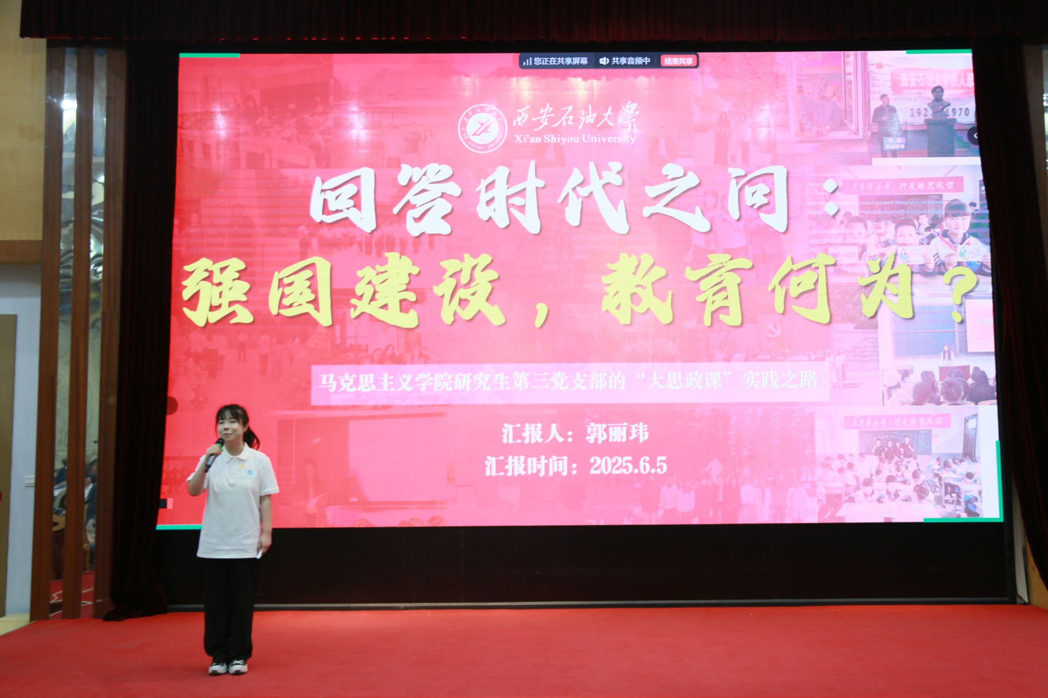 在十佳党支部风采展示中,石油工程学院铁人红旗研究生党支部以“以党性铸魂强骨塑身、承铁人血脉砥砺前行”为主题,讲述支部如何以铁人精神引领,石油精神铸魂,实现人才培养、科学研究、支部建设、志愿服务和基层就业的全面成果。马克思主义学院研究生第三党支部讲述了支部组建调研团跨越多省徒步千余公里访谈石油工人、建立乡村实践基地,用铁人精神诠释新时代思政课,探索出一条以“马院红”铸魂、以“先锋志”育人的“大思政课”实践之路。机械工程学院2023级研究生党支部展示了支部建立“管理—监督—宣传”三力驱动创新工作体系、构建“参与—提醒—批评”闭环监督机制,用制度机制带动支部建设整体提升。