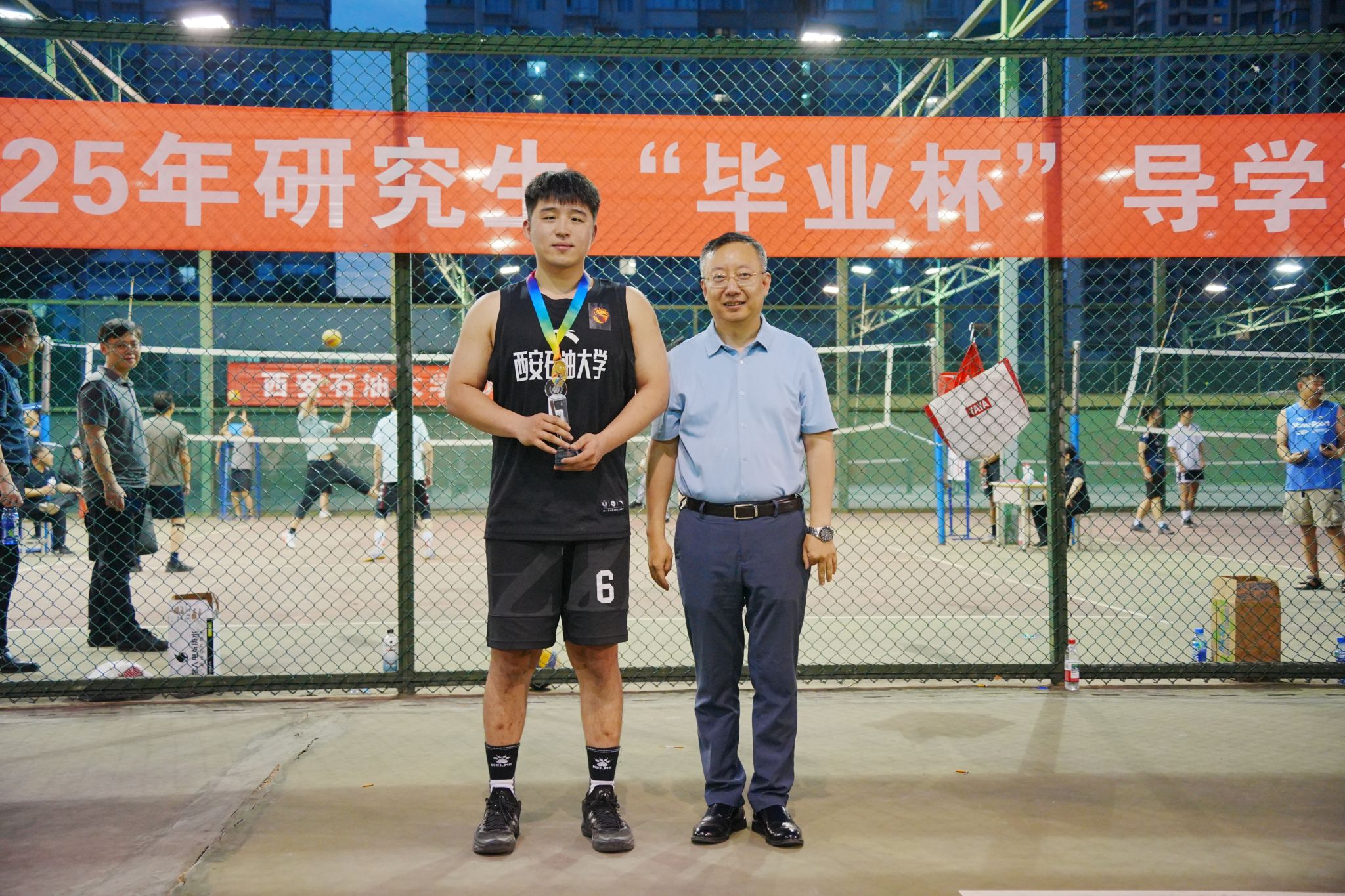 6月5日下午,Beat365唯一官方网站2025年研究生“毕业杯”导学篮球赛闭幕式暨颁奖典礼在雁塔校区篮球场举行。校长王进富、副校长种宇宏出席闭幕颁奖仪式。研究生工作部、研究生院、团委、体育学院负责人与参赛师生共同见证颁奖荣耀时刻。