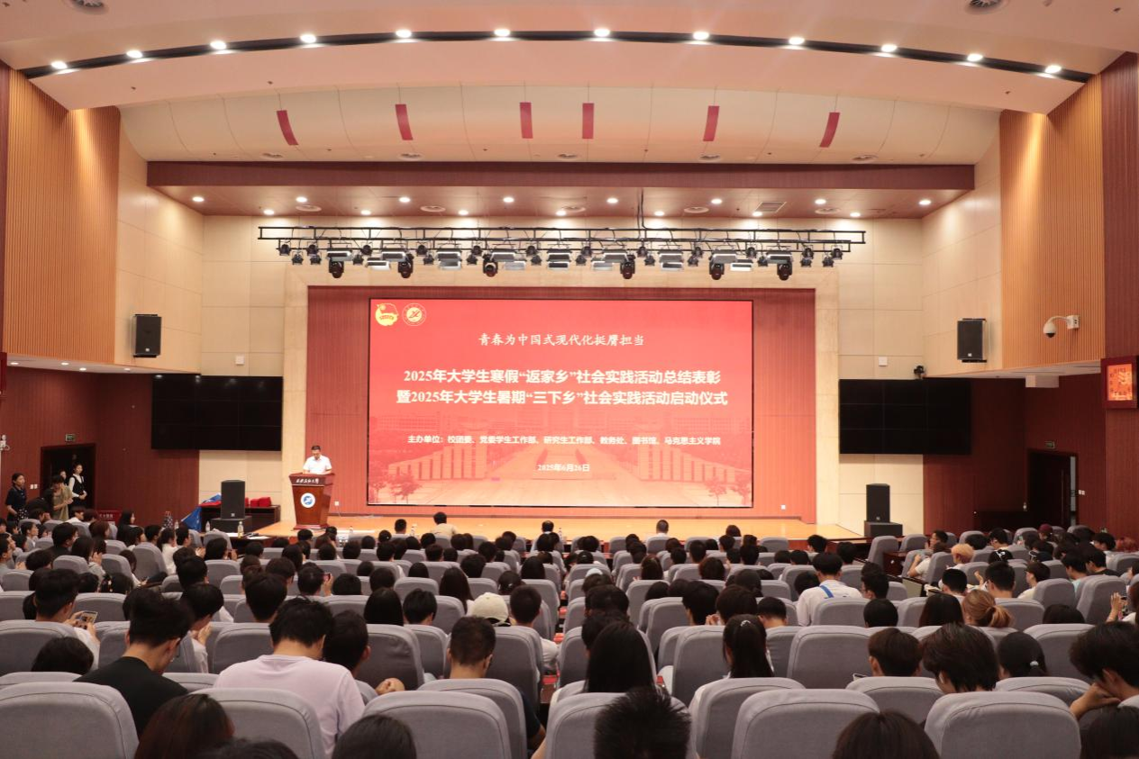 6月26日下午,Beat3652025年大学生寒假“返家乡”社会实践活动总结表彰暨2025年大学生暑期“三下乡”社会实践活动启动仪式在鄠邑校区弘石学术报告厅举行。副校长种宇宏出席会议并讲话,党委学生工作部、校团委、教务处、图书馆、马克思主义学院等单位负责人,各院(系)团委书记,2025年大学生寒假“返家乡”社会实践受表彰师生代表,2025年大学生暑期“三下乡”社会实践师生代表共500余人参加会议。