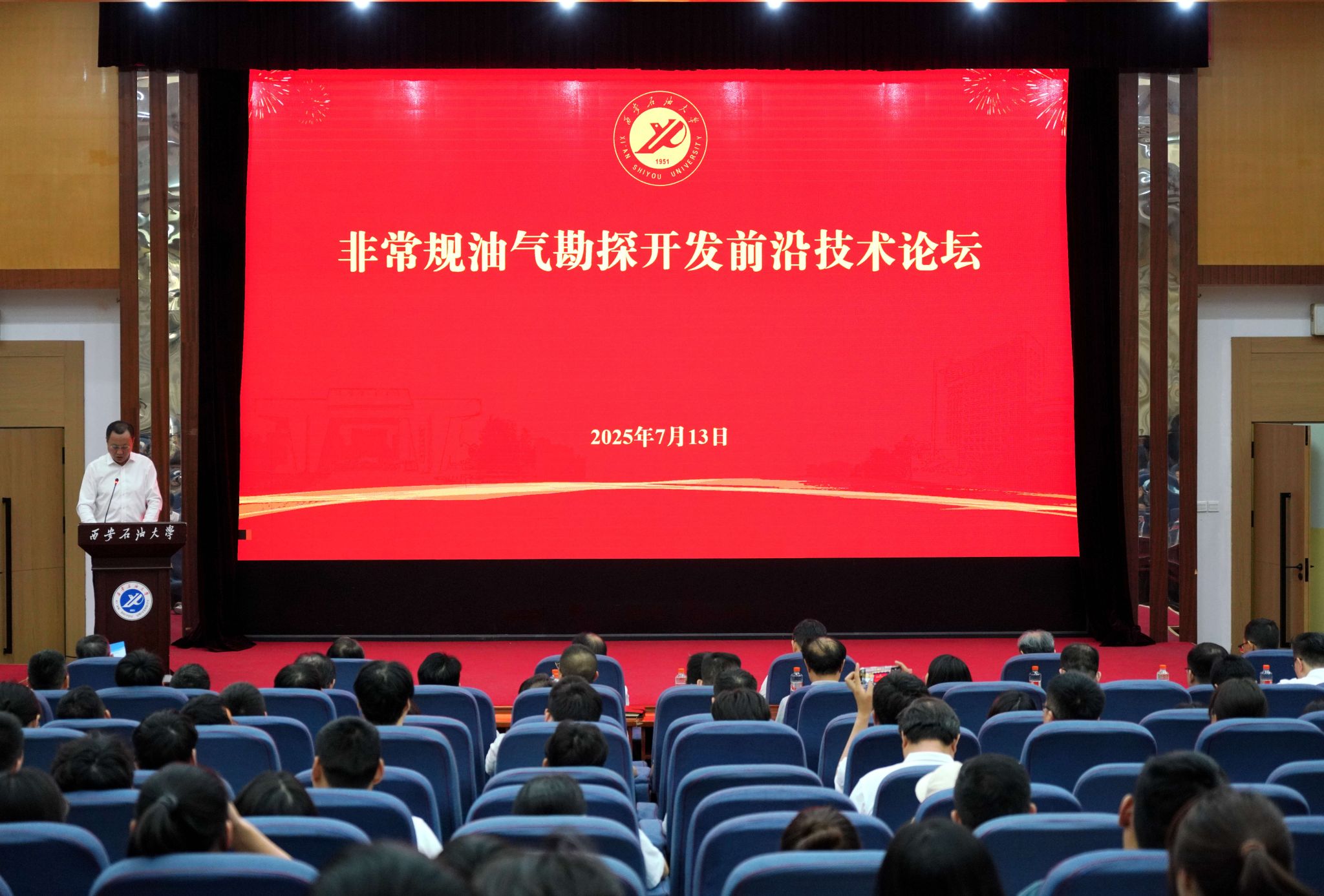 7月13日上午,学校在雁塔校区会议中心召开“非常规油气勘探开发前沿技术论坛”。陕西延长石油(集团)有限责任公司总地质师、首席科学家王香增,中国石油长庆油田分公司原副总工程师郑明科,油气钻采输送装备全国重点实验室主任霍春勇,中国石油长庆油田分公司首席专家喻健,中国石油青海油田分公司首席技术专家李江涛,中国石油集团测井有限公司科技管理部经理李传伟应邀出席并作主旨报告。Beat365校长王进富、党委副书记张木、副校长张骁勇出席论坛,各学院主要负责人及师生代表近300人参加论坛。论坛由副校长张荣军主持。