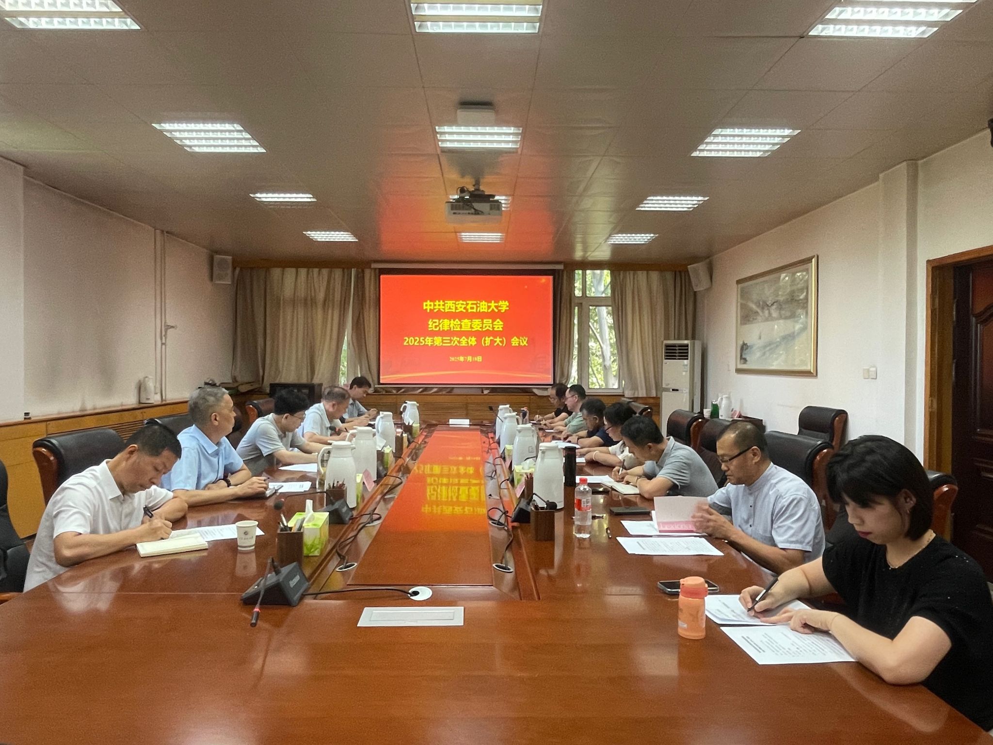 7月18日上午,学校纪委在雁塔校区办公楼五楼会议室召开2025年第三次纪委会(扩大)会议。校党委副书记、纪委书记、监察专员王辉强主持会议并讲话。校纪委委员、纪检监察和巡察干部参加会议。