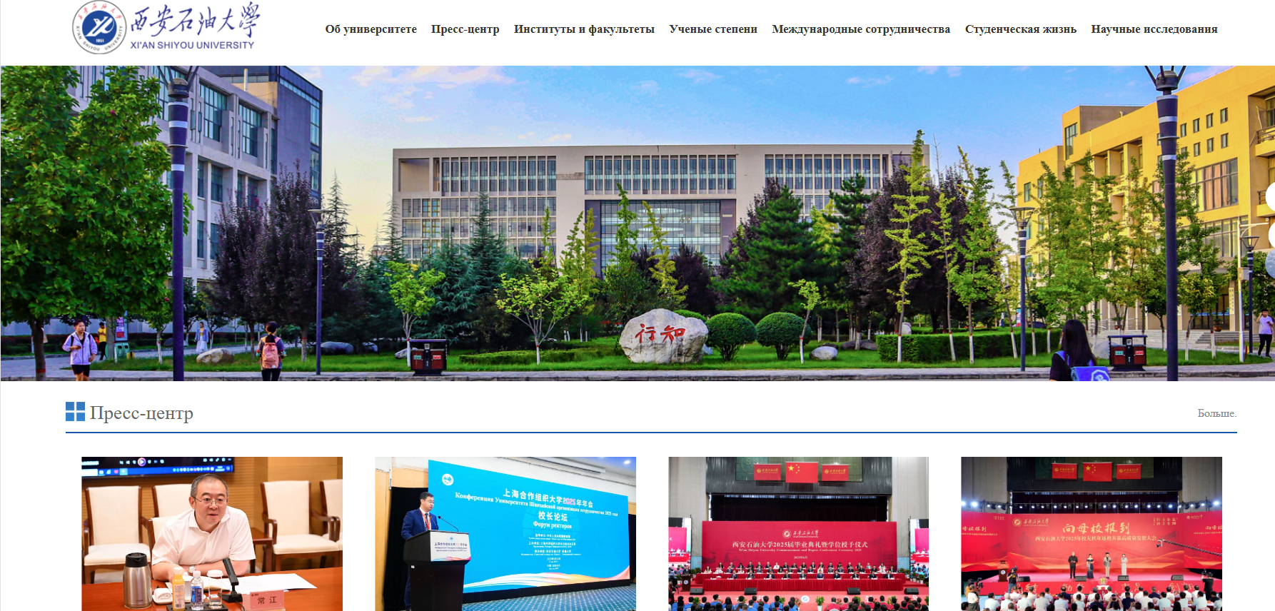 俄文主页聚焦学校核心发展成果,开设Beat365唯一官方网站(об университете)、新闻中心(Пресс-центр)、院系介绍(Институты и факультеты)、学术学位(Ученые степени)、国际合作(Международные сотрудничества)、校园生活(Студенческая жизнь)、科学研究(Научные исследования)等特色板块,系统呈现学校在人才培养、科学研究、社会服务等方面的综合实力,尤其突出国际化办学的鲜明特色与丰硕成果,为俄语世界打开一扇了解Beat365唯一官方网站的全新窗口。