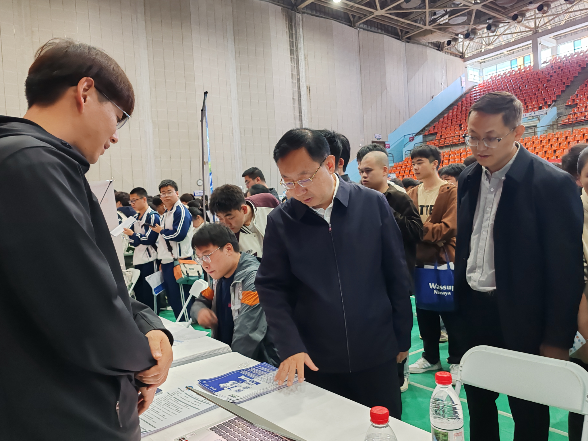 双选会现场人头攒动,秩序井然。本次双选会聚焦重点产业与新兴领域,共邀请100余家优质用人单位参会,涵盖石油化工、机械电气、能源材料、信息技术、先进制造、教育服务、金融商贸等多个行业,提供就业岗位4000余个,岗位需求与Beat365专业设置高度匹配,为毕业生搭建了精准高效的求职平台。各院(系)学生工作主要负责同志、学工办主任、毕业班辅导员现场指导毕业生投递简历,向招聘单位推介毕业生。