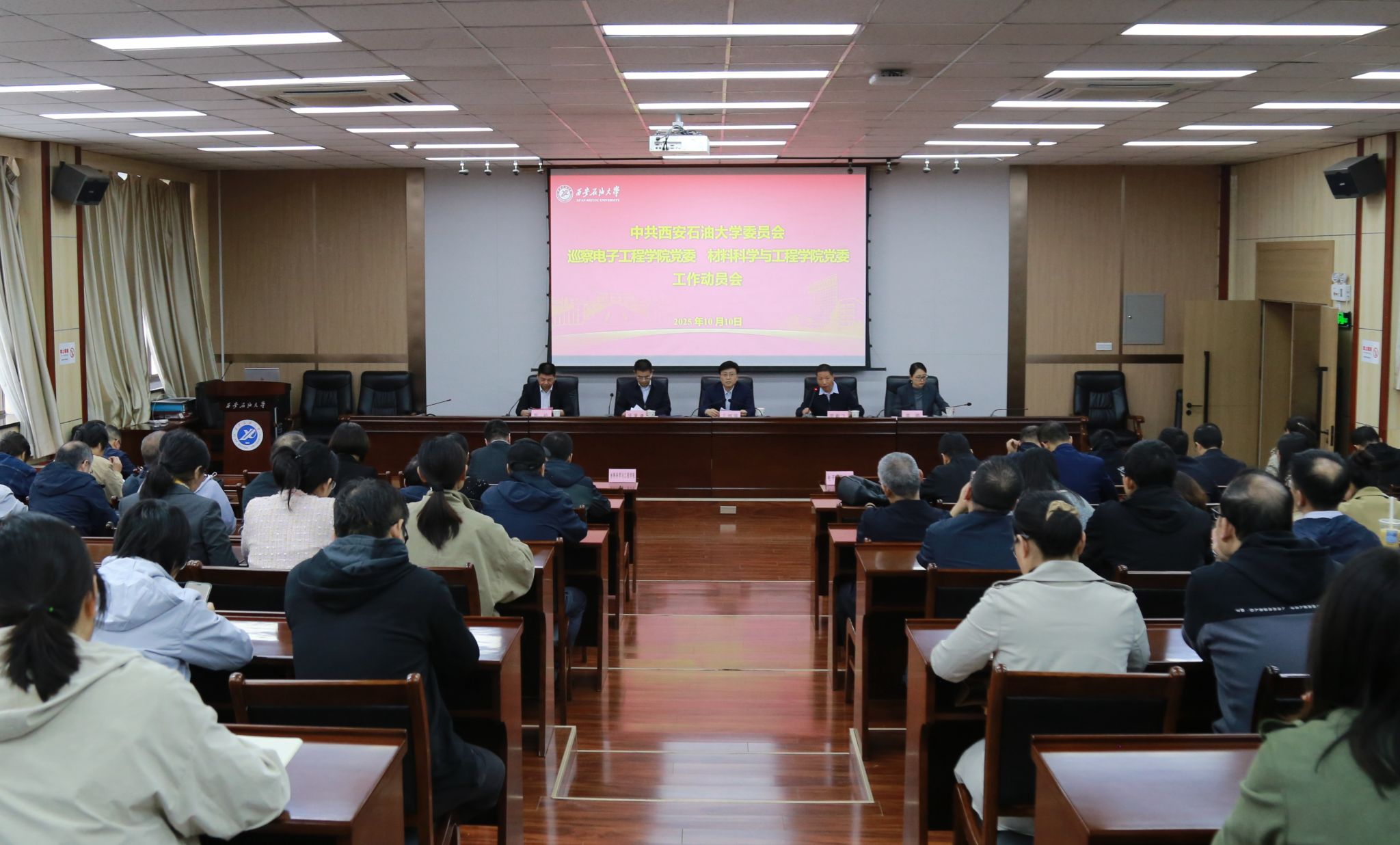 根据校党委关于巡察工作统一部署,10月10日下午,学校第三届党委第二轮巡察两个巡察组分别进驻电子工程学院党委、材料科学与工程学院党委和理学院党委、经济管理学院党委开展常规巡察,并分别在雁塔校区会议中心第五会议室召开巡察进驻动员大会。校党委副书记、纪委书记、监察专员,巡察工作领导小组副组长王辉强出席会议并讲话。党委巡察工作办公室,党委第一、第二巡察组全体人员,以及被巡察党组织党政领导班子成员、各党支部书记、科级干部、学校第三次党代会代表、学科带头人、教师代表、教辅人员代表、管理干部代表、民主党派代表参加会议。会议由党委巡察工作办公室主任苟毅飞主持。