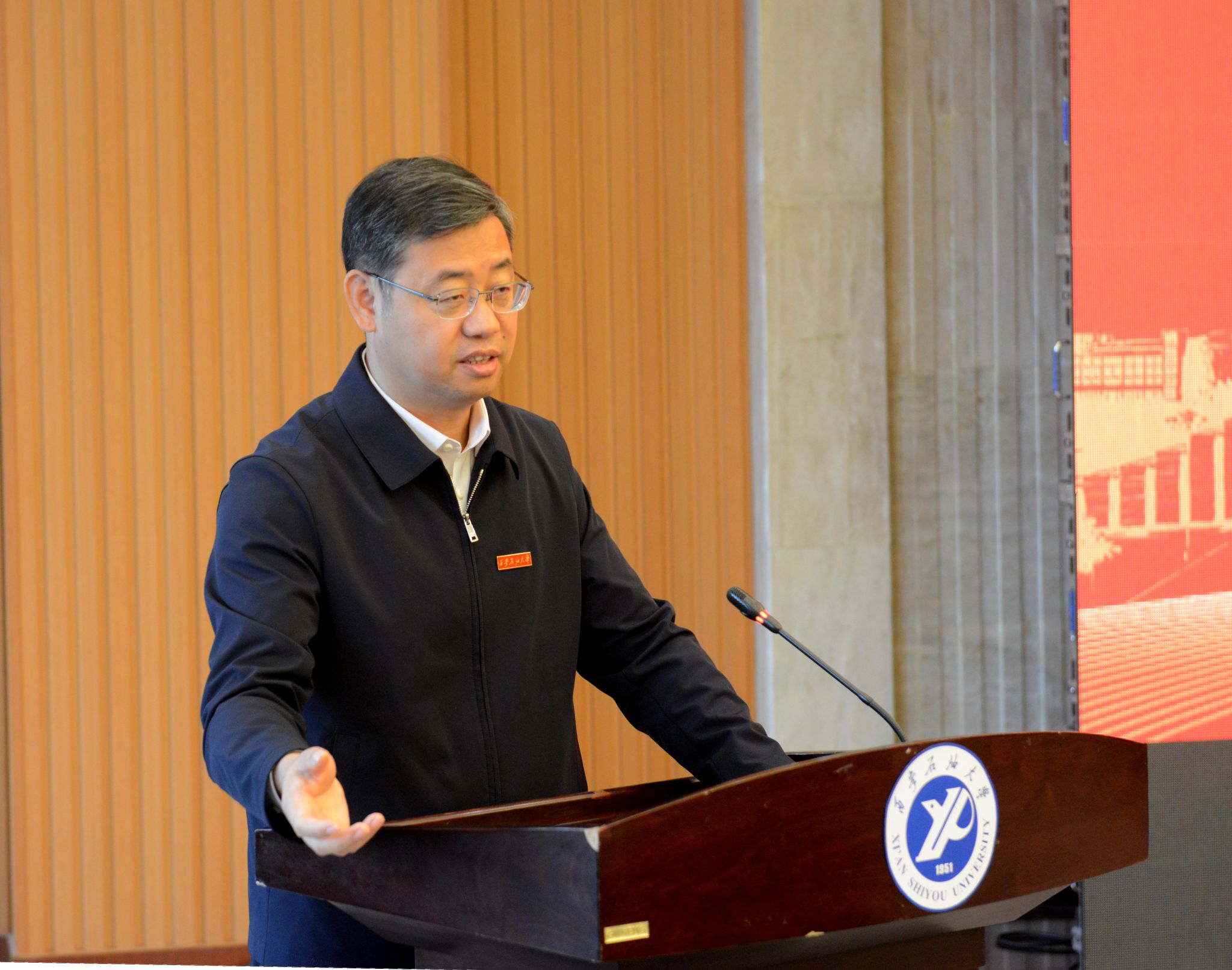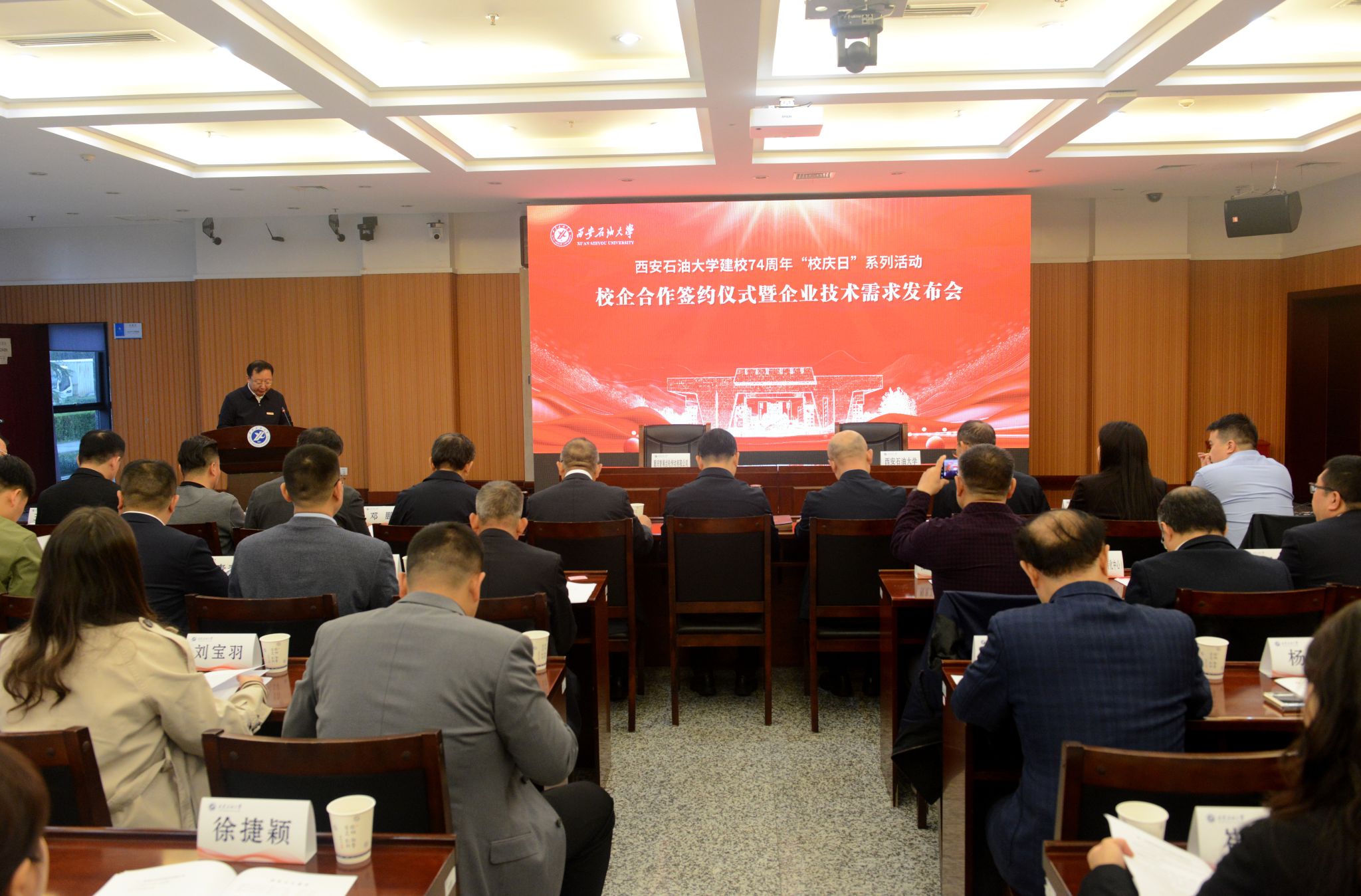 王进富在讲话中对各位校友企业家在校庆日专程返校表示热烈欢迎,对各企业长期以来给予学校的大力支持表示衷心感谢,对校企双方未来的深度合作表示无限期待。他指出,学校近年来始终紧扣能源行业和产业发展需求,紧密围绕人才培养、科学研究和社会服务三大职能,积极探索产学研用协同创新模式,推进教育科技人才一体化协同发展。此次在学校建校74周年校庆日这一特殊时刻,选择以校企合作签约与技术需求发布的形式开展交流,既是学校“开放办学、智慧办学、服务办学”理念的生动实践,更是基于行业高校定位,将企业的真实课题、真实场景、真实需求融入学校人才培养全过程的务实之举。他强调,当前学校正在全面推进教育、科技、人才一体改革,将以“改革”为主线,以“融合”为路径,重点推动五个方面的融合:一是培养目标融合。学校将围绕企业实际需求,聚焦在校学生、青年教师、企业技术骨干等群体,推动人才培养与企业需求精准对接,定制培养方案,实现人才供需对接;二是教材课程融合。学校将重构课程体系,建设和完善大学科技园区和企业工程实验室,与企业共同参与教材课程编写,不断把企业工程场景、技术成果融入到教育教学中;三是师资力量融合。学校将建立企业专家任教机制,引入具有丰富工程实践经验的人才参与到教育教学中来,不断打造“双师型”教学团队;四是实习就业融合。学校将加强与企业的深度融合,通过科研项目参与、课题研究实践等形式贯通学生的实习实践与就业发展道路;五是评价标准融合。学校将持续构建学校人才培养与企业岗位标准相衔接的学生评价体系。他期待与广大校友企业深度融合,充分发挥校企双方各自优势,加强在人才联合培养、科研联合攻关等方面的务实合作,共同培育更多高素质人才,共同为保障国家能源安全和推动石油石化行业高质量发展贡献力量。
