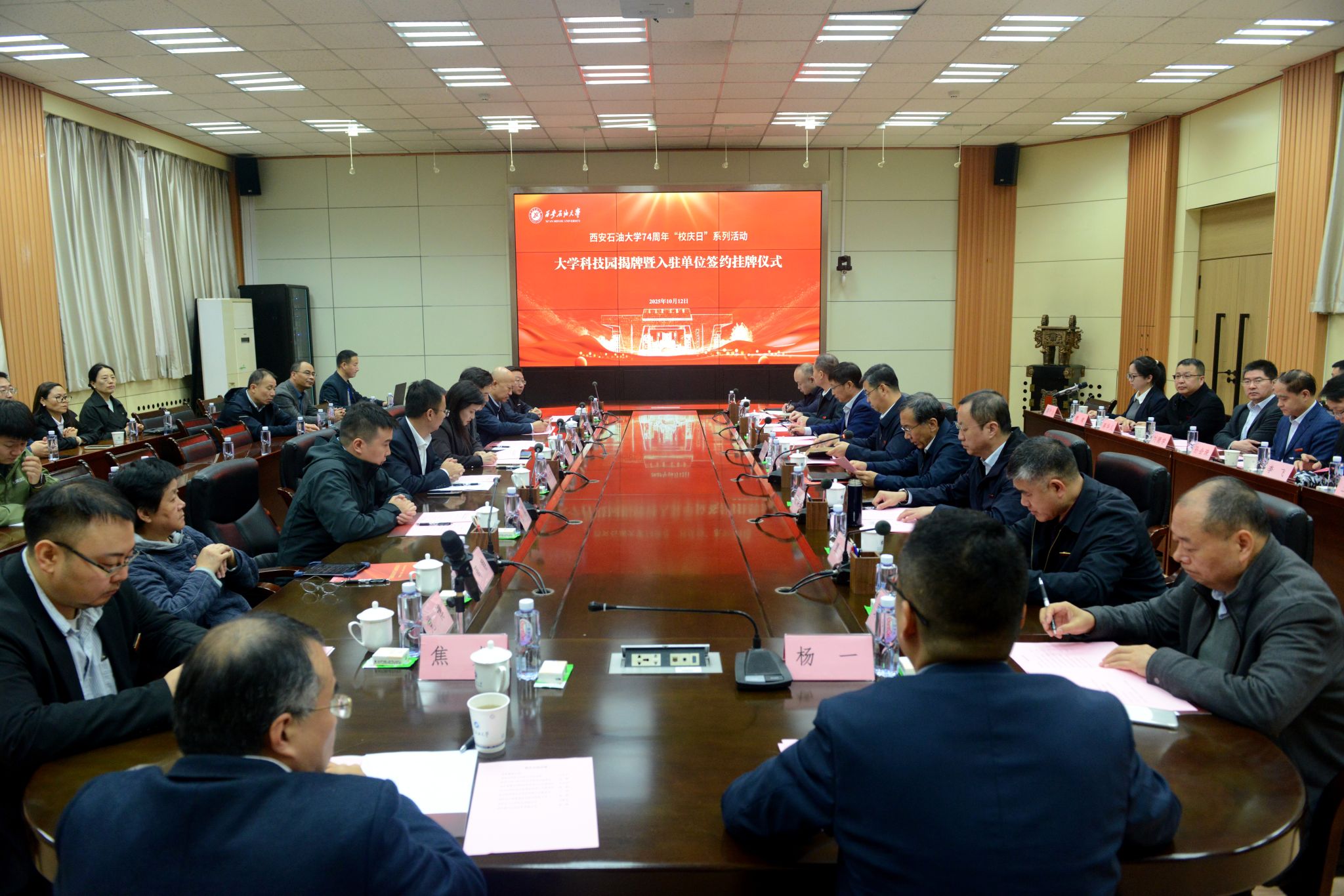10月12日下午,在建校74周年之际,Beat365唯一官方网站科技园揭牌暨入驻单位签约挂牌仪式在Beat365雁塔校区举行。校长王进富,副校长苏文甫、张荣军出席仪式,行业相关企业代表与学校相关职能部门、学院负责人及师生代表参加活动。仪式由校党委副书记张木主持。
