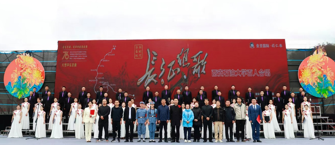 10月2日上午,音乐系师生在延安齐唱《长征组歌》为祖国庆生,从《突破封锁线》到《大会师》,同学们以饱满的热情、铿锵的节奏,再现红军二万五千里长征的壮阔历程与英雄气概。现场群众驻足聆听、共同跟唱。学生纷纷表示,在延安唱响红色经典,不仅是艺术的呈现,更是精神的传承,是对革命先辈最深切的致敬。