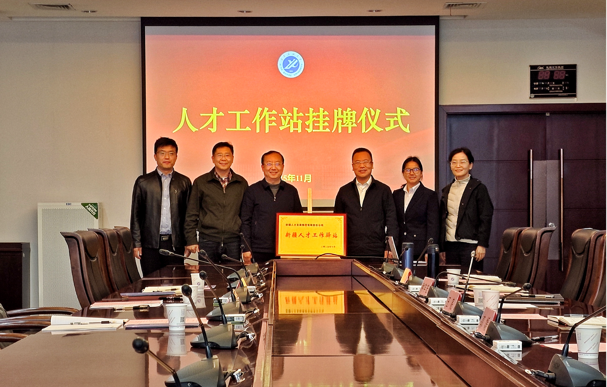 座谈会后,王彦斐代表新疆人才创新科技有限公司,向Beat365授予“新疆人才工作驿站”牌,标志着校企双方的合作正式迈入常态化、实质性推进阶段。