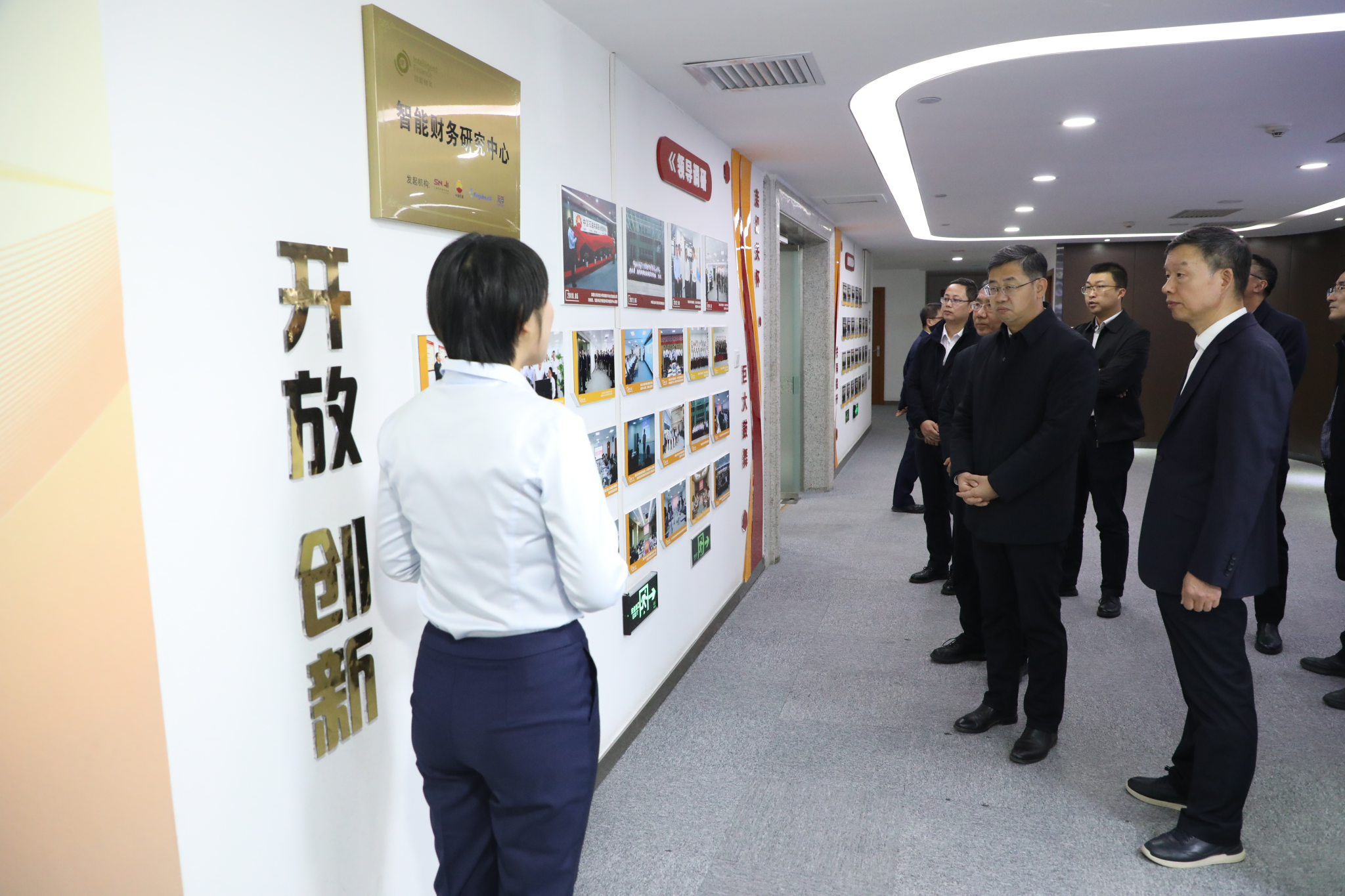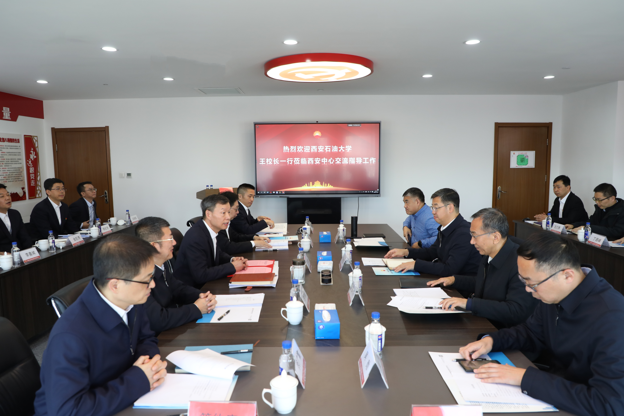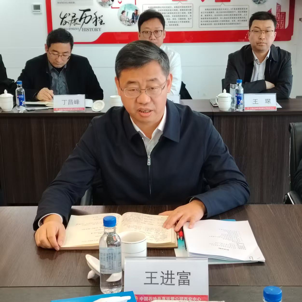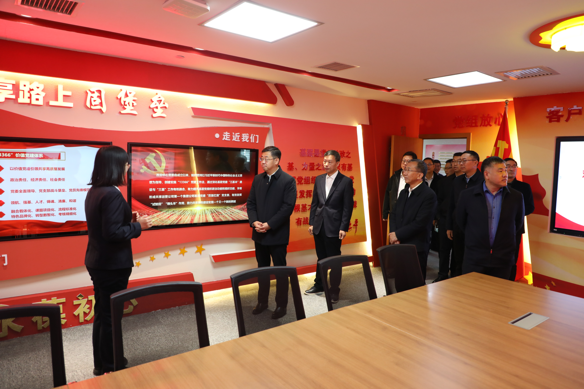 会前,王进富一行参观了西安中心党建活动室、共享建设文化墙以及数字化员工区。